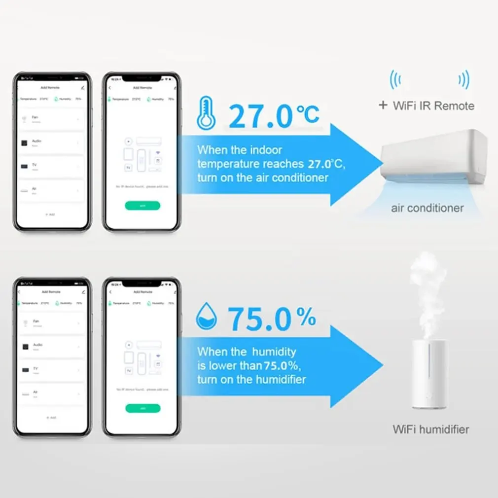 Tuya Smart WIFI IR remote control + temperature and humidity sensor infrared remote control for TV DVD alsac and Alexa Home.