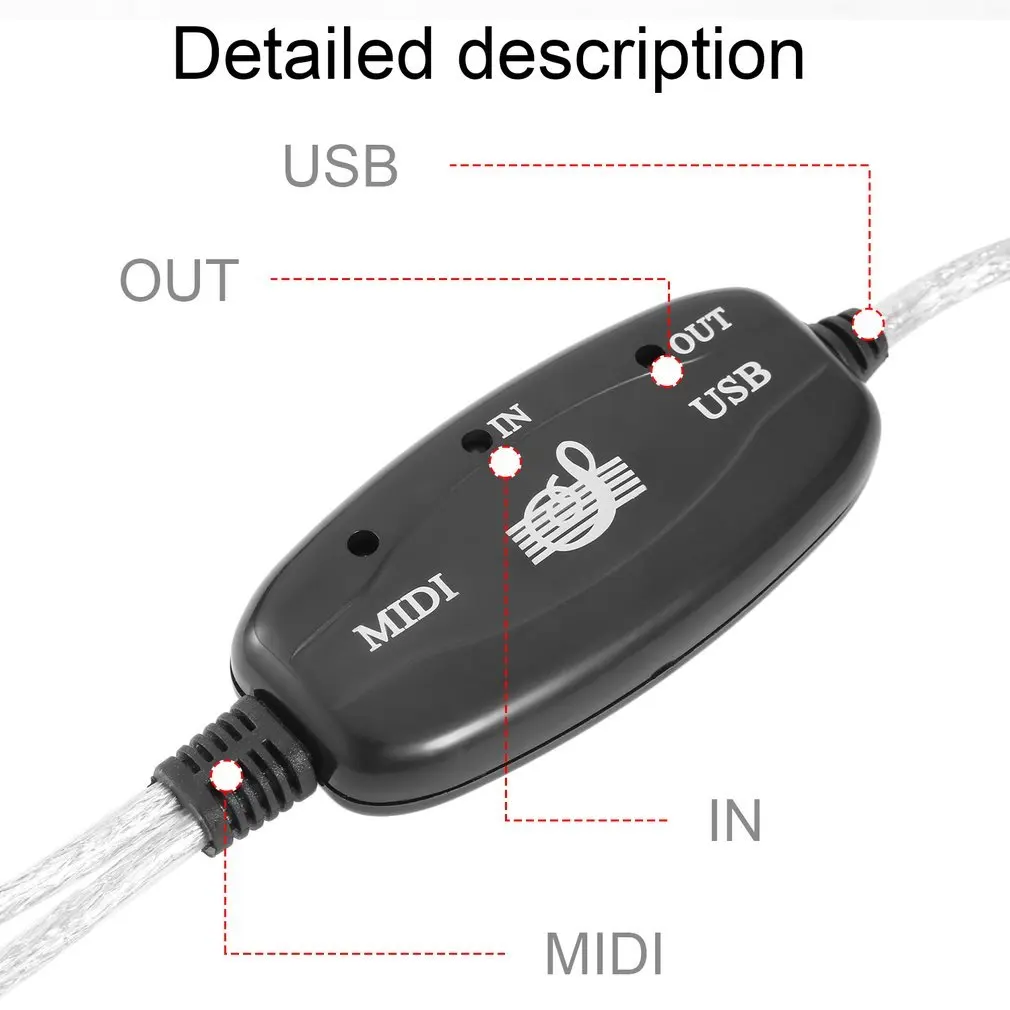 Кабель MIDI-USB для интерфейса, адаптер, для клавиатуры, электронная барабанная музыка, создание конвертера ПК в музыкальную клавиатуру, шнур