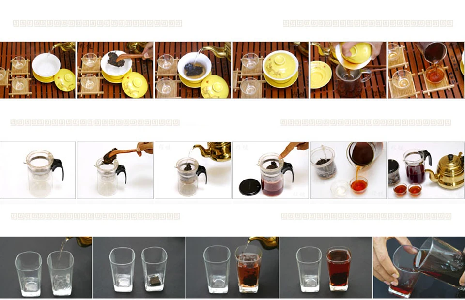 Чай пуэр в основном производится в Xishuangbanna, Linyi и Puer в провинции Юньнань. Чай pu-erh богат оранжевым и желтым, долговечным ароматом, уникальным вкусом, сильным мягким вкусом и долговечной устойчивостью к пене. Чай пуэр имеет множество функций, таких как снижение жира в крови, снижение веса, подавление пищеварения и пищеварения, нагревание желудка, увеличение жидкости, утоление жажды, питье и детоксикация. Can Qingwei Sheng Jin, пищеварение и мокрота, похмелье, детоксикация, мочегонное и холодное, кашель и мокрота, снижение уровня холестерина в крови. Pu'er Ripe tea-это Юньнань даезхон, сушеный на солнце зеленый чай в качестве сырья, после ферментации и обработки чая. Цвет коричневый и красный, и его вкус чистый и гармоничный. Он имеет уникальный Чэнь Сян.