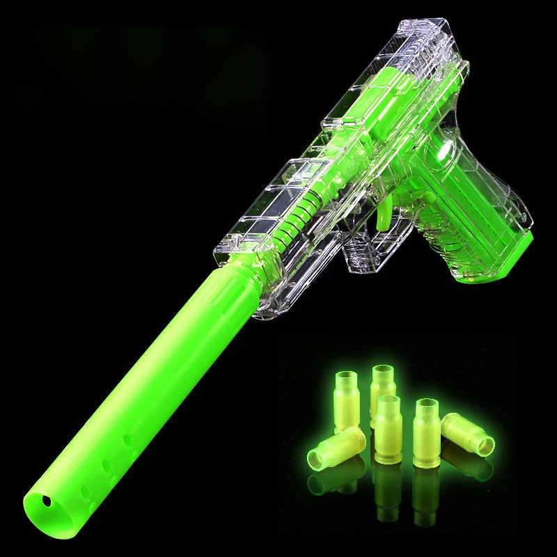 Характеристики: бросание ракушек и мягких пуль-Ночной светящийся зеленый пистолет