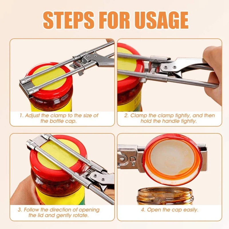 [Adjustable design] The bottle opener is suitable for most jam jars and jelly jars, and can also be adjusted to fit smaller sizes, from 0.2 to 4.3 inches (about 0.5 to 10.9 cm), such as cola bottles.