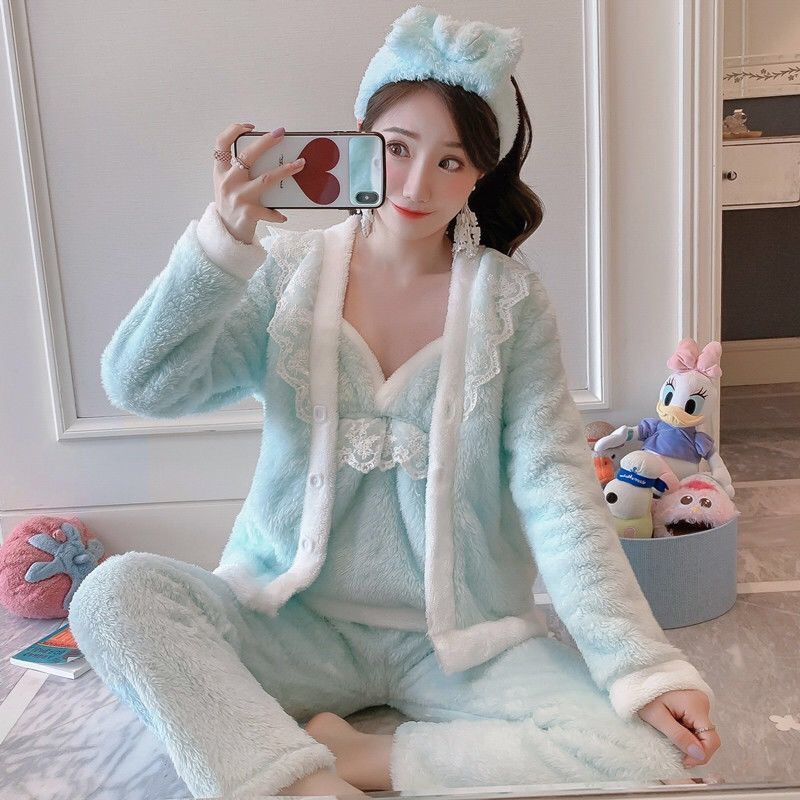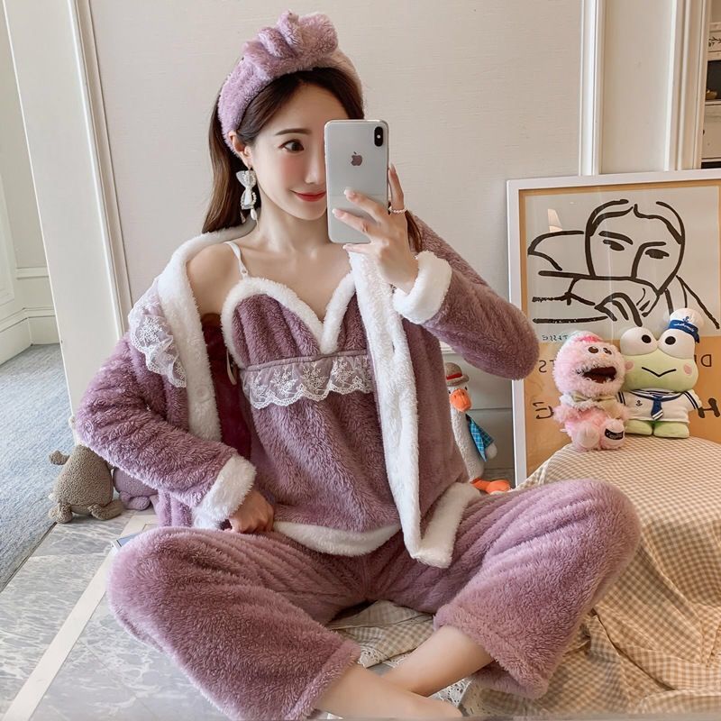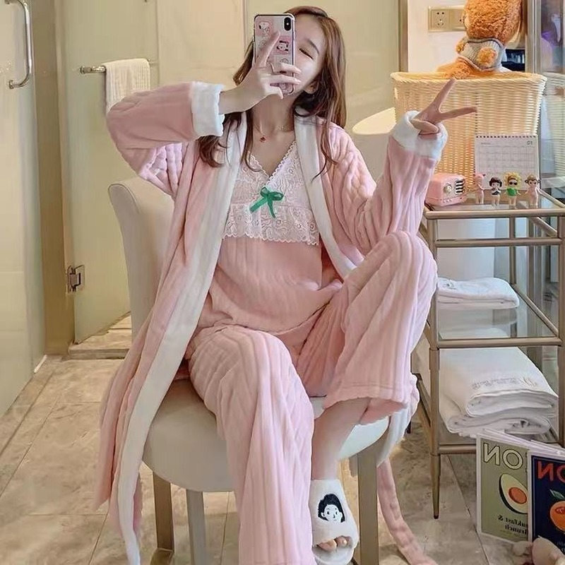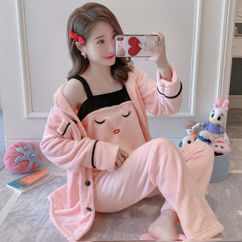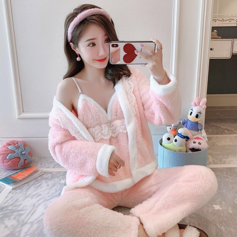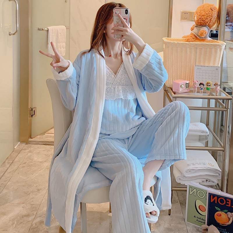 3 шт., осенне-зимние женские пижамные комплекты, халат из кораллового флиса, сексуальные майки, топы и штаны, Женская фланелевая одежда для сна, ночная рубашка, костюм для сна Y5