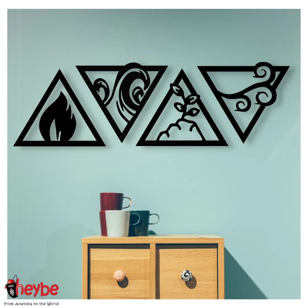 Деревянные настенные художественные украшения 4 элемента воздушный огонь