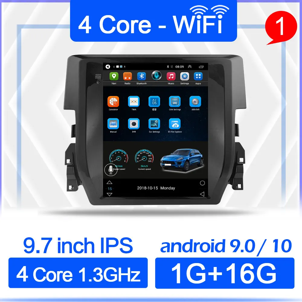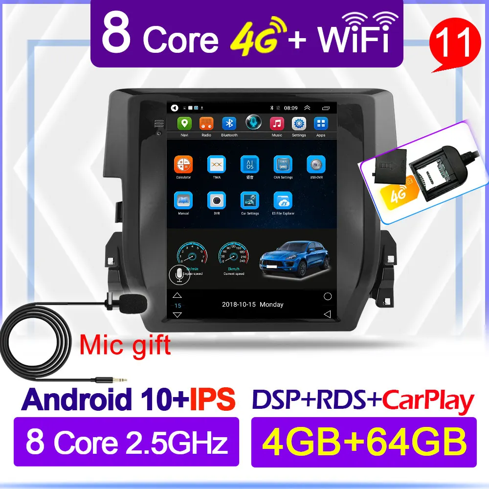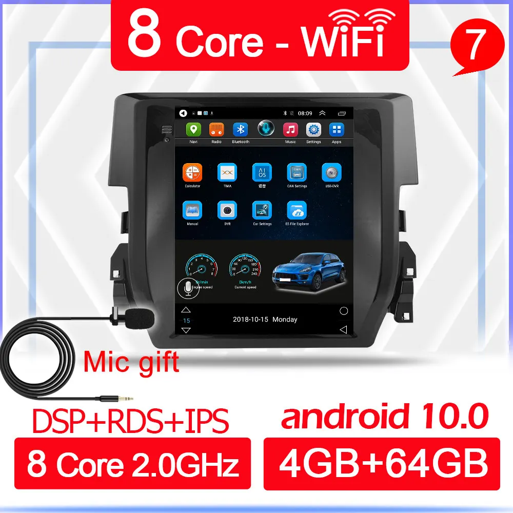 Автомобильный Android 10 плеер для Honda Civic 2016 2017 2018 2019 2din радио мультимедиа видео GPS навигация 2 din для Tesla стиль