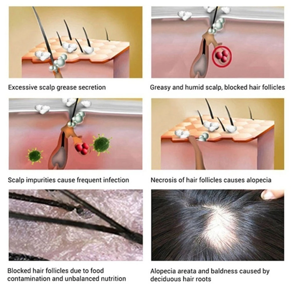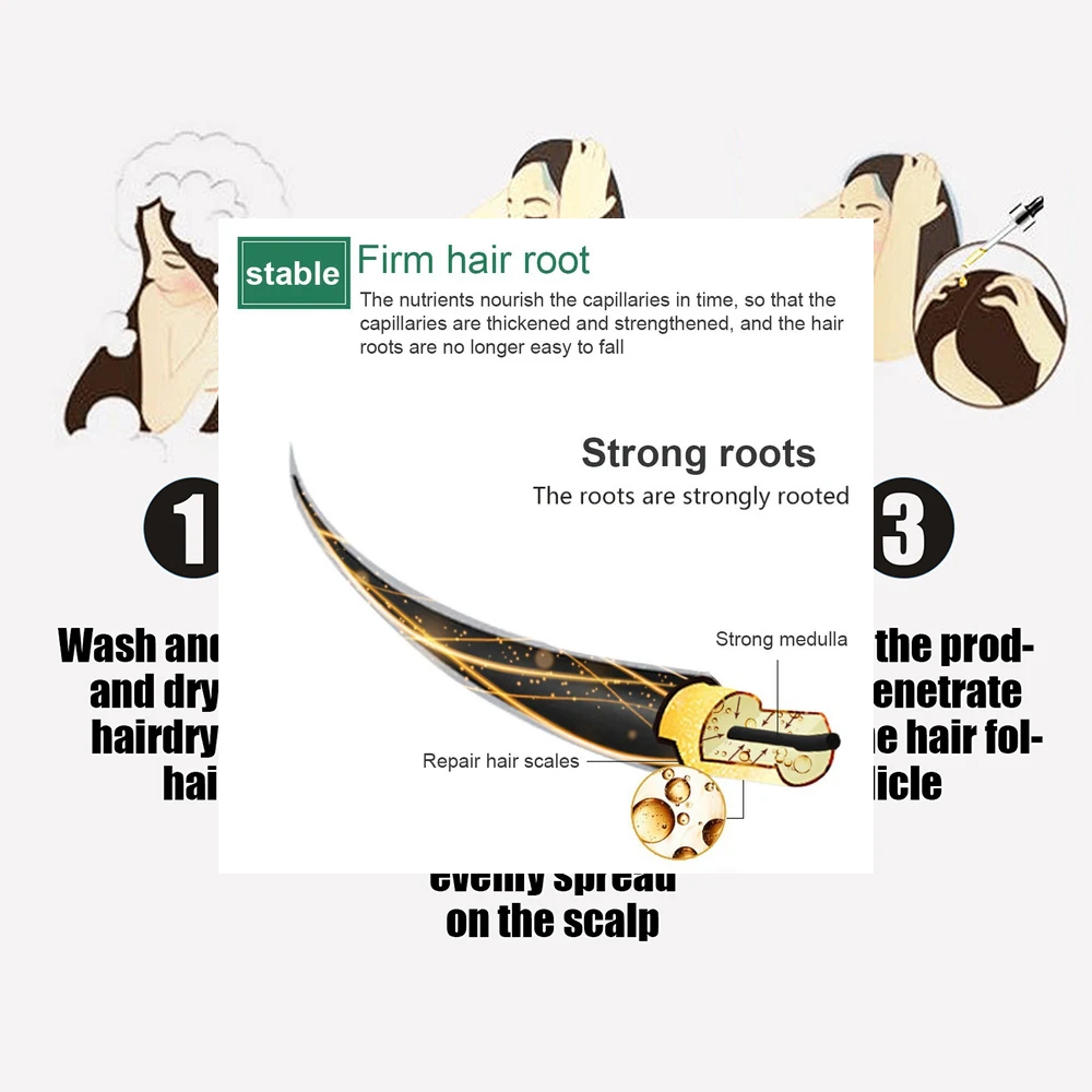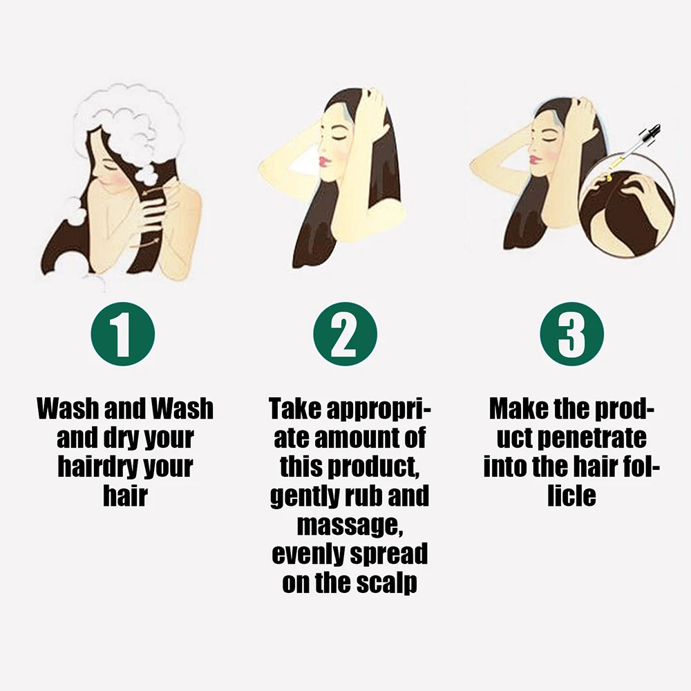 Простота в использовании: Смешайте 100 мл каждого шампуня с 3 мл эссенции, Налейте смешанный шампунь в ладонь и втирайте его, затем аккуратно массируйте кожу головы пальцами.