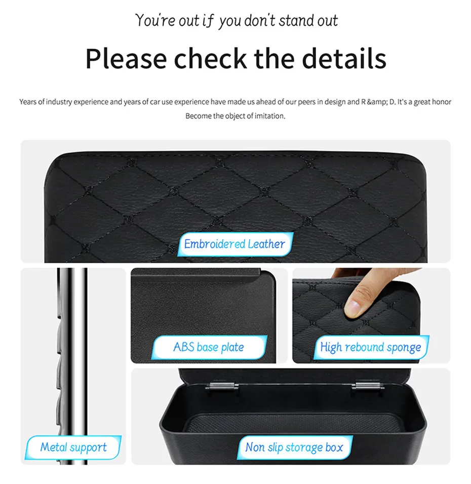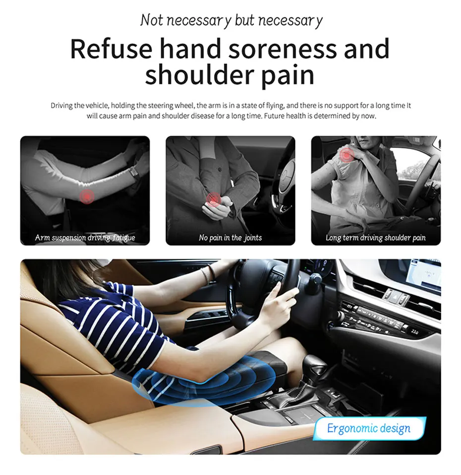 1. Многофункциональная коробка для хранения подлокотников, Встроенная Мягкая губка с высокой устойчивостью, не рухнет, основная функция заключается в снятии длительной усталости вождения и повышении концентрации вождения;
