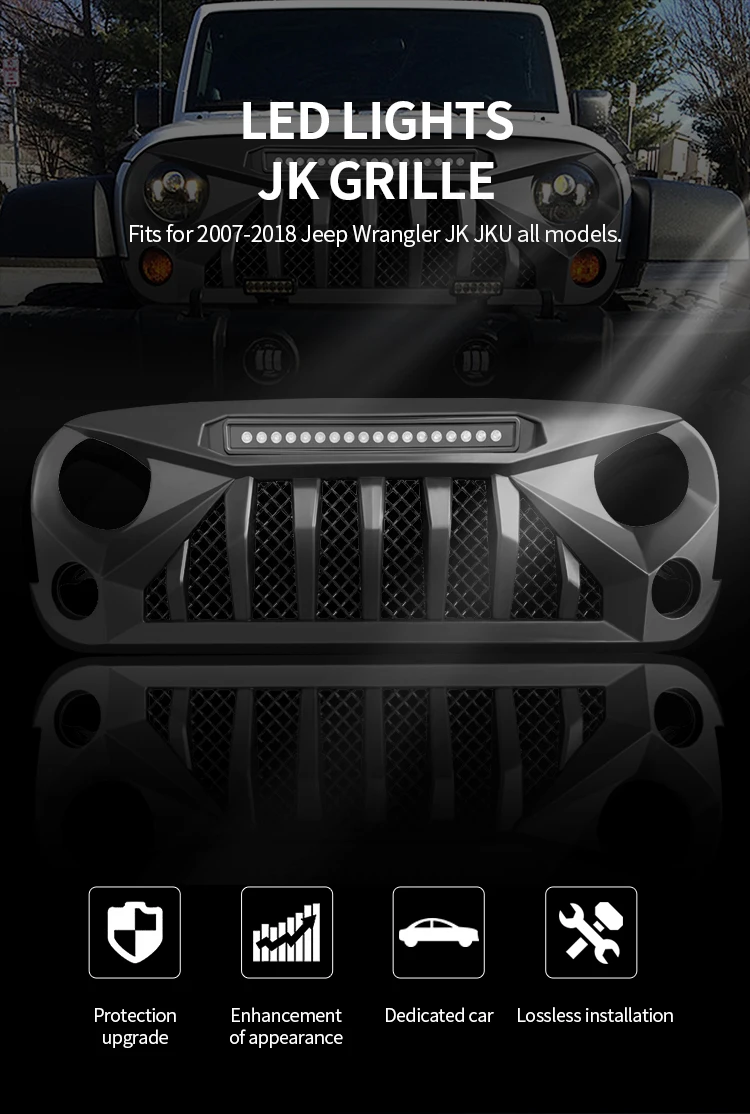 1 шт. матовая Черная решетка Mars с светодиодный внедорожным освещением для Jeep Wrangler JK JKU.