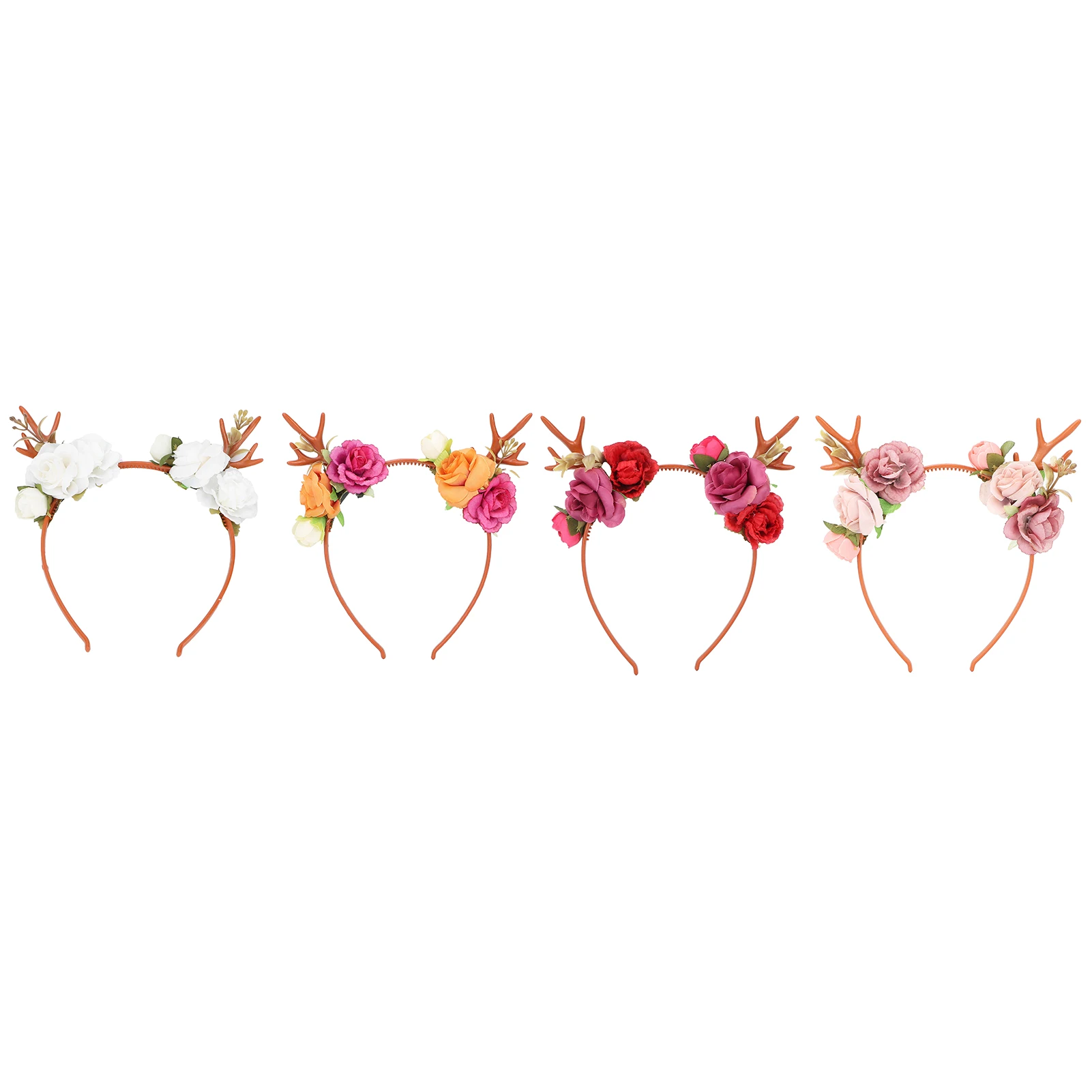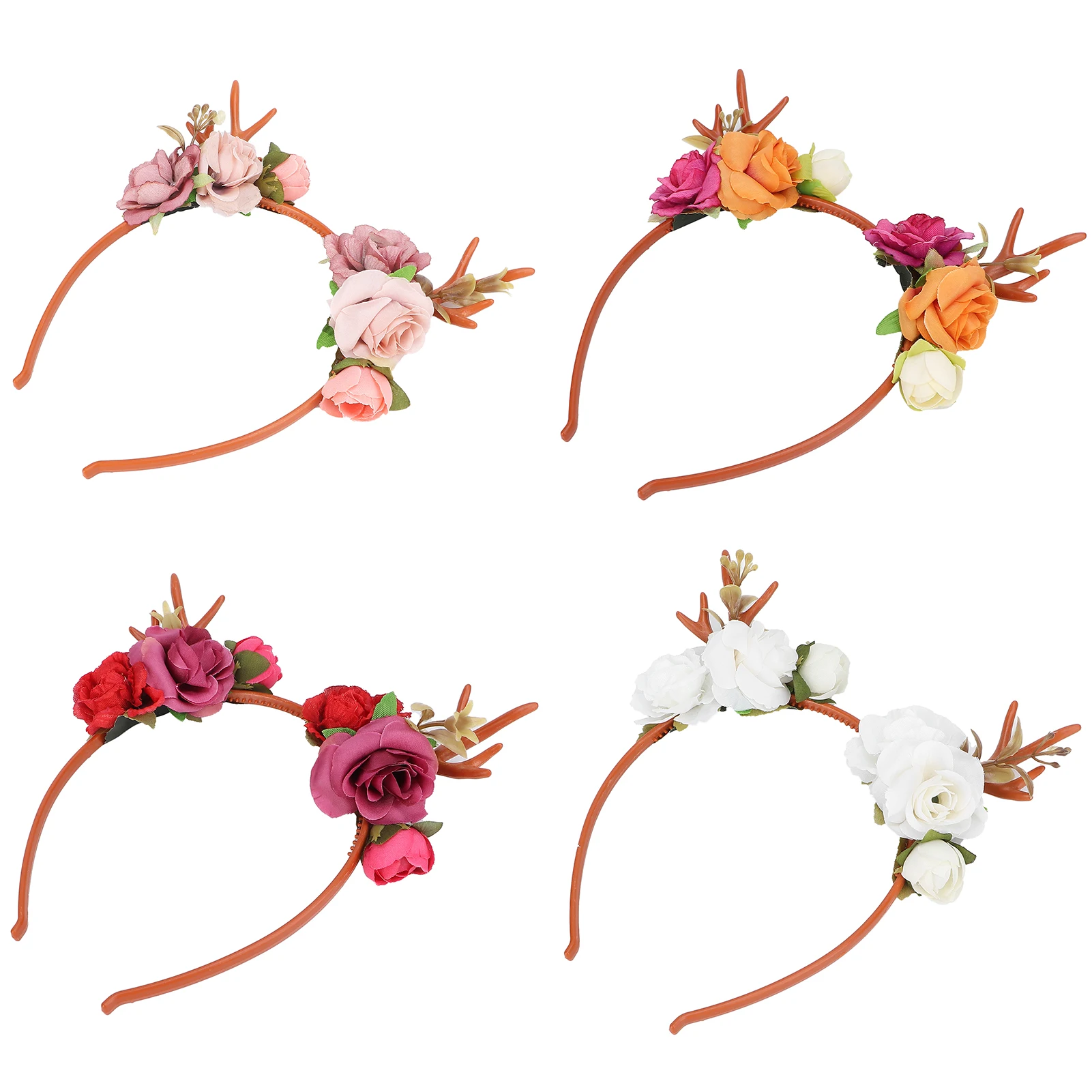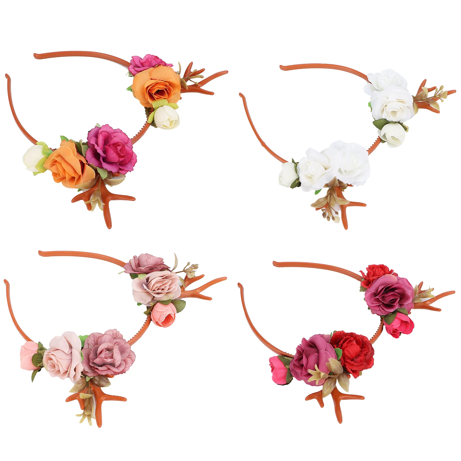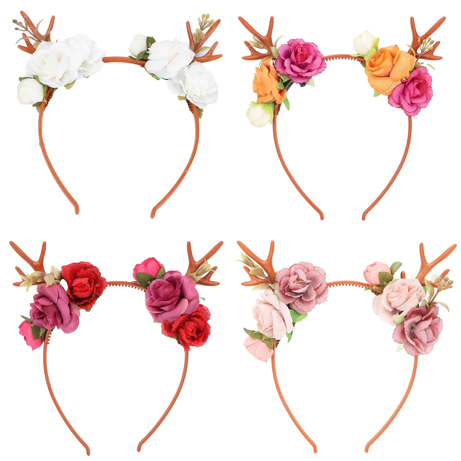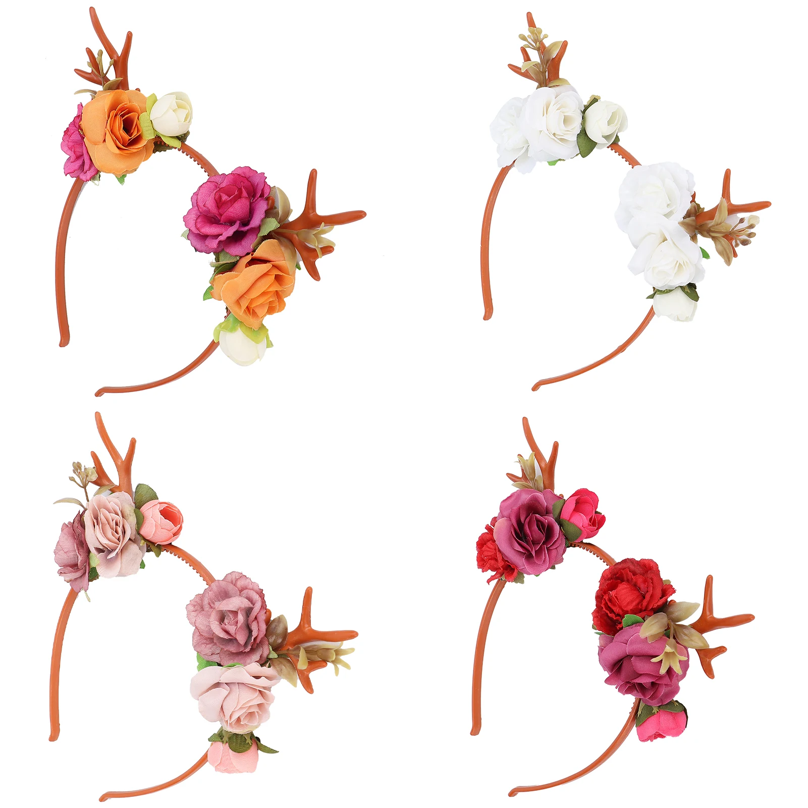 Модная Цветочная повязка на голову с оленьими рогами, цветочная гирлянда, корона для вечеринки, костюмированной вечеринки, свадьбы, Рождества