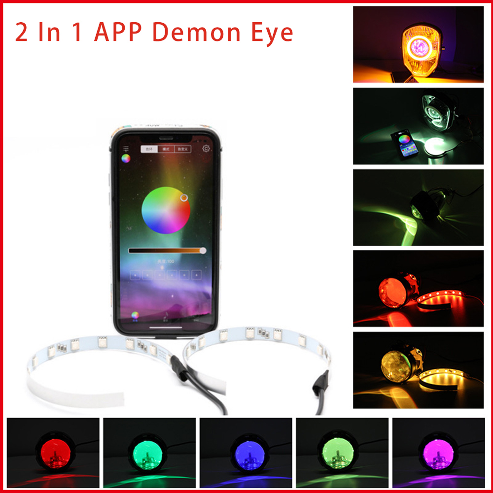 2 в 1 цветной RGB светодиодный проектор с дьявольским глазом светодиодный DRL с демоном сглаза светодиодный проектор с линзами автомобильный Стайлинг 5050smd автомобильные лампы