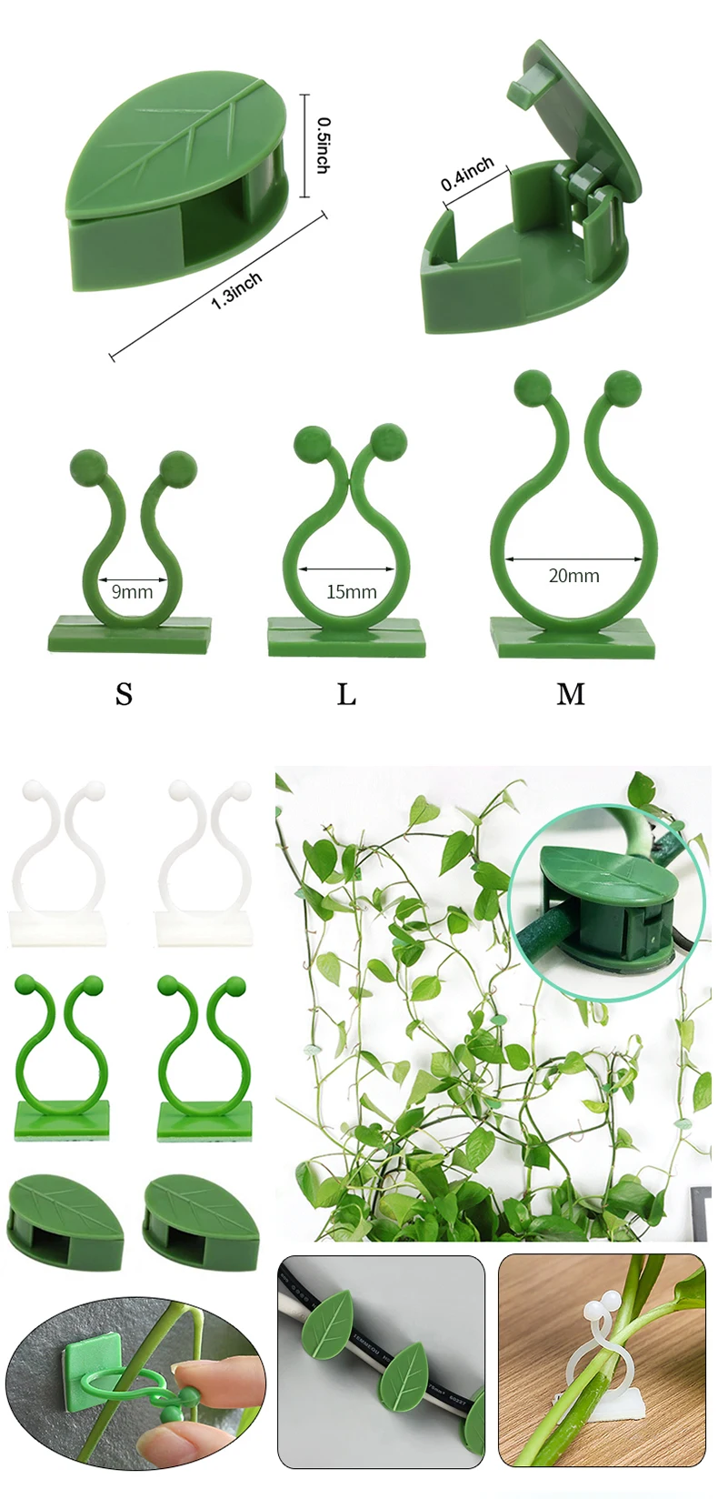 6. Характеристики: организуйте ветви лозы, храните провода, кабели и т. Д. Он также может быть использован для управления проводками, такими как домашнее управление кабелем. Высококачественный пластик не повредит растения.