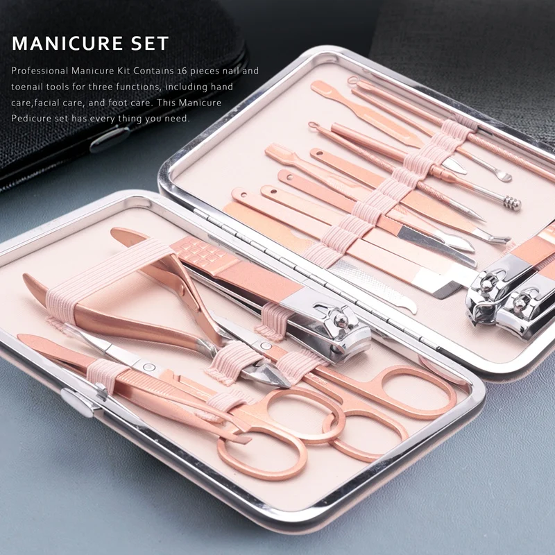 Маникюрный набор (18 шт.): профессиональный маникюрный набор содержит 16 инструментов для ногтей и ногтей на ногах для трех функций, включая уход за руками, уход за лицом и уход за ногами. Этот набор для маникюра и педикюра имеет все, что вам нужно.
