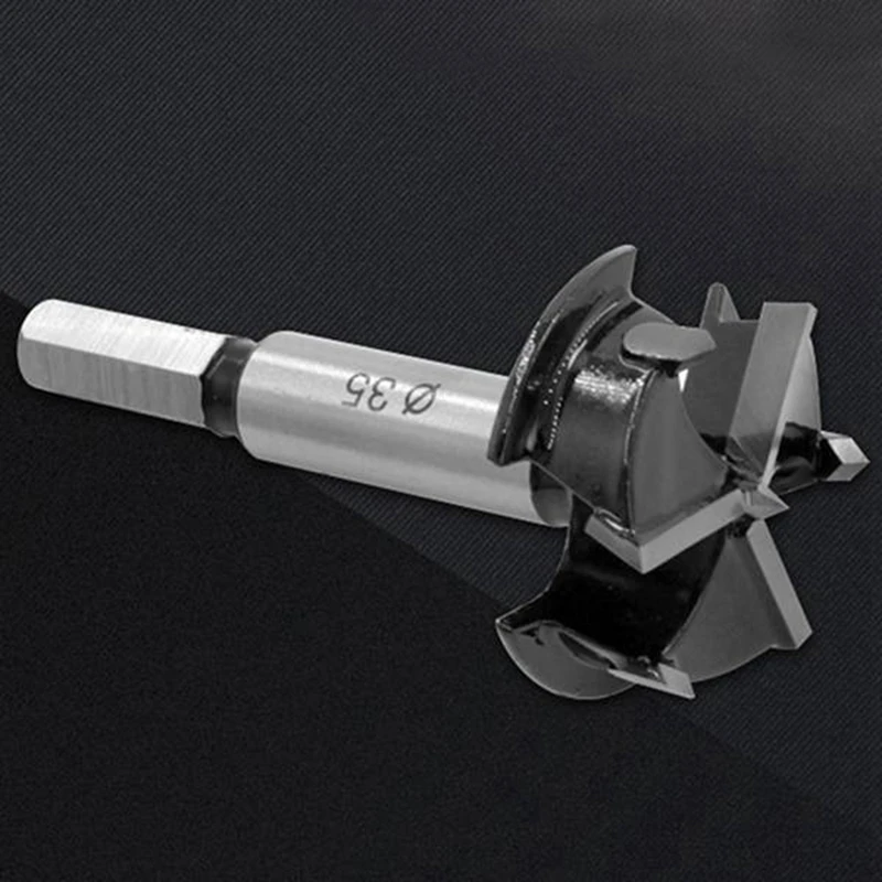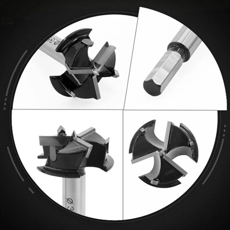 Quality woodworking saw drill bit with special locating hinge.