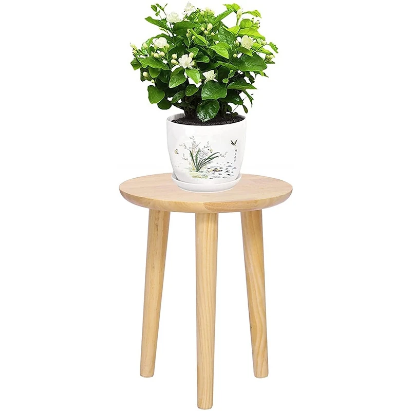Comprised with a round tabletop and three solid wood legs, this wooden plant stand holding potted plants provides an elegant look for small spaces (plants and pots are not included). Mid-century modern design makes easy to match with your other furniture or decor.