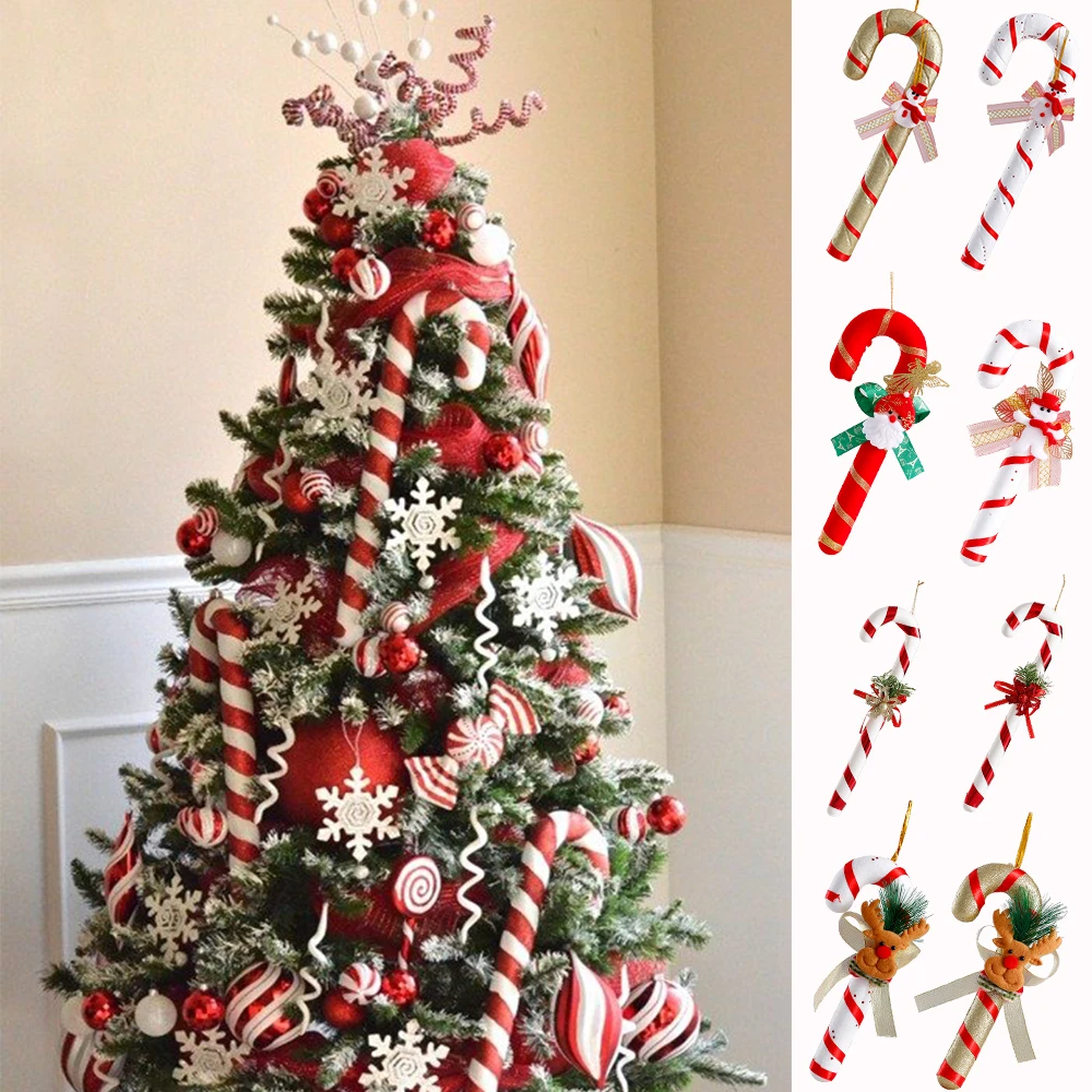 Рождественские украшения, пластиковые конфетные тростники, Рождественская елка, висячие украшения, большие костыли для дома, новогодние вечерние, рождественский подарок 2022