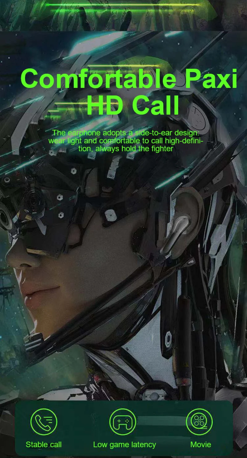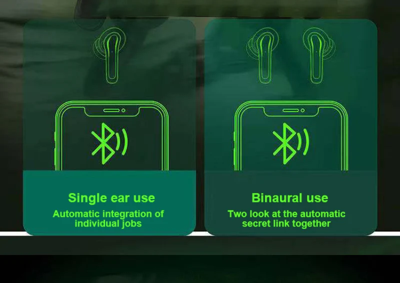 После того, как наушники будут соединены в первый раз, вам просто нужно удалить наушники из зарядного устройства, и наушники автоматически подключатся к вашему мобильный телефон, который удобен в использовании. С чипом электронной спортивной игры и высокопроизводительным игровым процессором Вы можете наслаждаться более замечательным игровым опытом, поэтому он подходит для геймера.