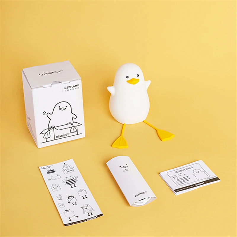 Особенности: 1. Прикроватный ночной Светильник изготовлен из высококачественного силикона в качестве корпуса, прочный в использовании, гарантированное качество. 2. Яркий и нежный светодиодный светильник, энергосберегающий и экологически чистый. Теплый светильник с 2 регулируемыми яркостью, приятный для глаз отличный Ночной светильник, отдых и т. д. 3. Нажав на корпус, чтобы переключить яркость, креативный домашний Ночной светильник. 4.USB зарядная лампа (встроенная в 1200 мАч) лампа, может питаться от банка питания или подключать любой адаптер для использования. 5. Милый мультяшный стиль утки, забавный и восхитительный, также прекрасное украшение комнаты. Характеристики: Материал: силикон + PC + ABS Цвет корпуса: белый Размер изделия: 96X88x126 мм Источник освещения: светодиодный Цвет освещения: теплый Вес нетто: 160 г Источник питания: Встроенный аккумулятор 1200 мА Способ зарядки: зарядка через USB Номинальная мощность: ≤ 0,5 w Время зарядки: ≤ 4 часа