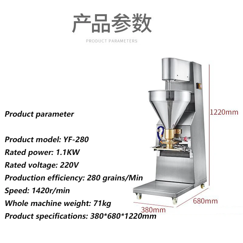 2. Положите мясную пасту в Хоппер, запустите машину и сделайте meatball 280 шт в минуту, meatball этой машиной хороший вкус, эластичный, хороший цвет.
