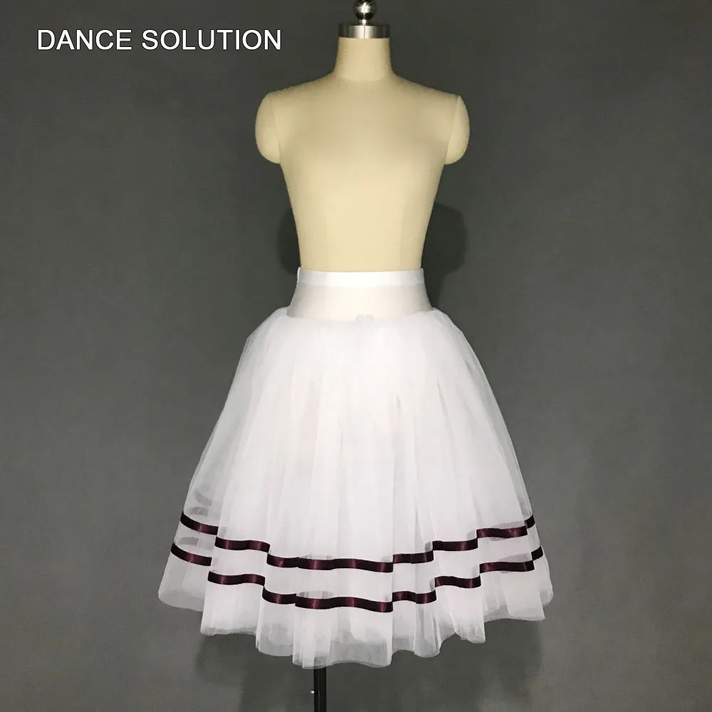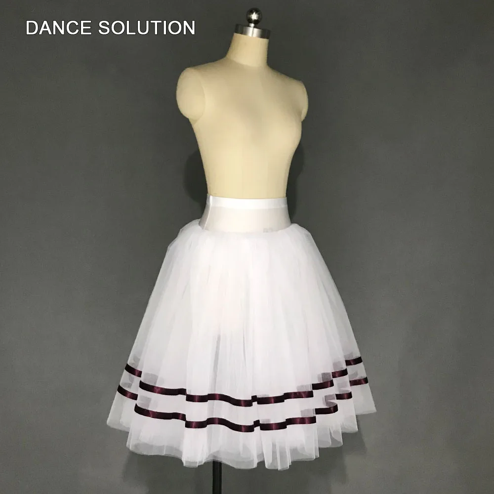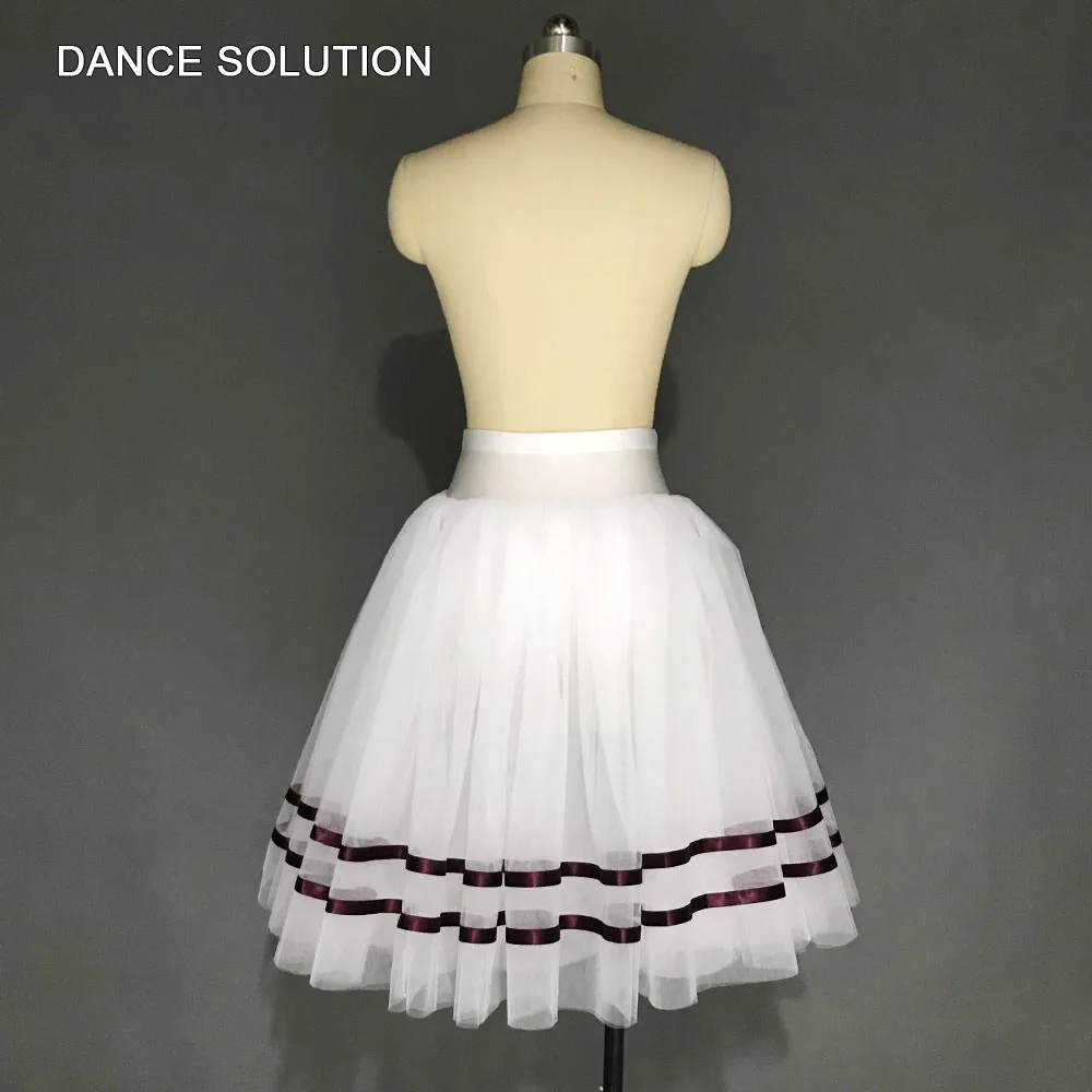 Деталь изделия: белая балетная танцевальная юбка-пачка с двумя рядами лент.