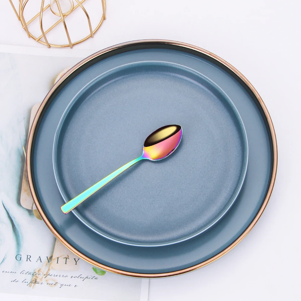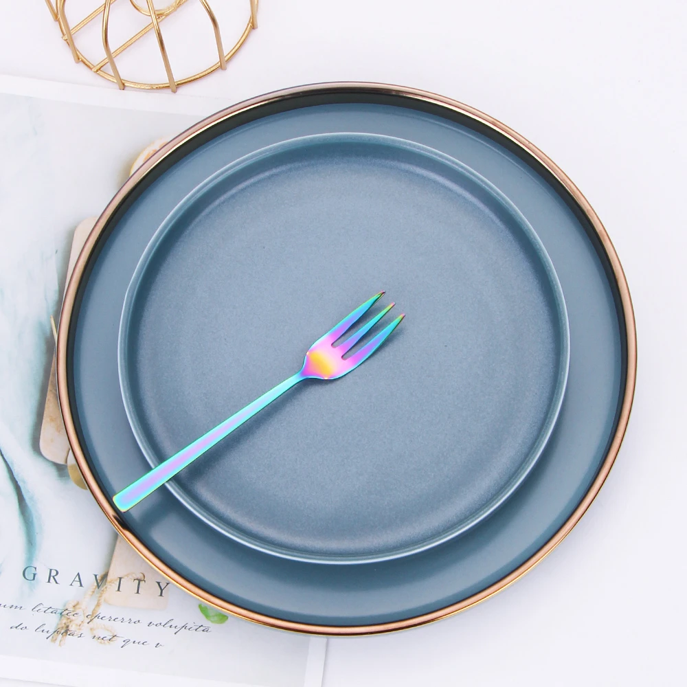 Столовые приборы Радуга Нержавеющая сталь набор столовых приборов радуги 5 шт. вилки, ножи, ложки с Чай вилка, посуда, столовые приборы, набор