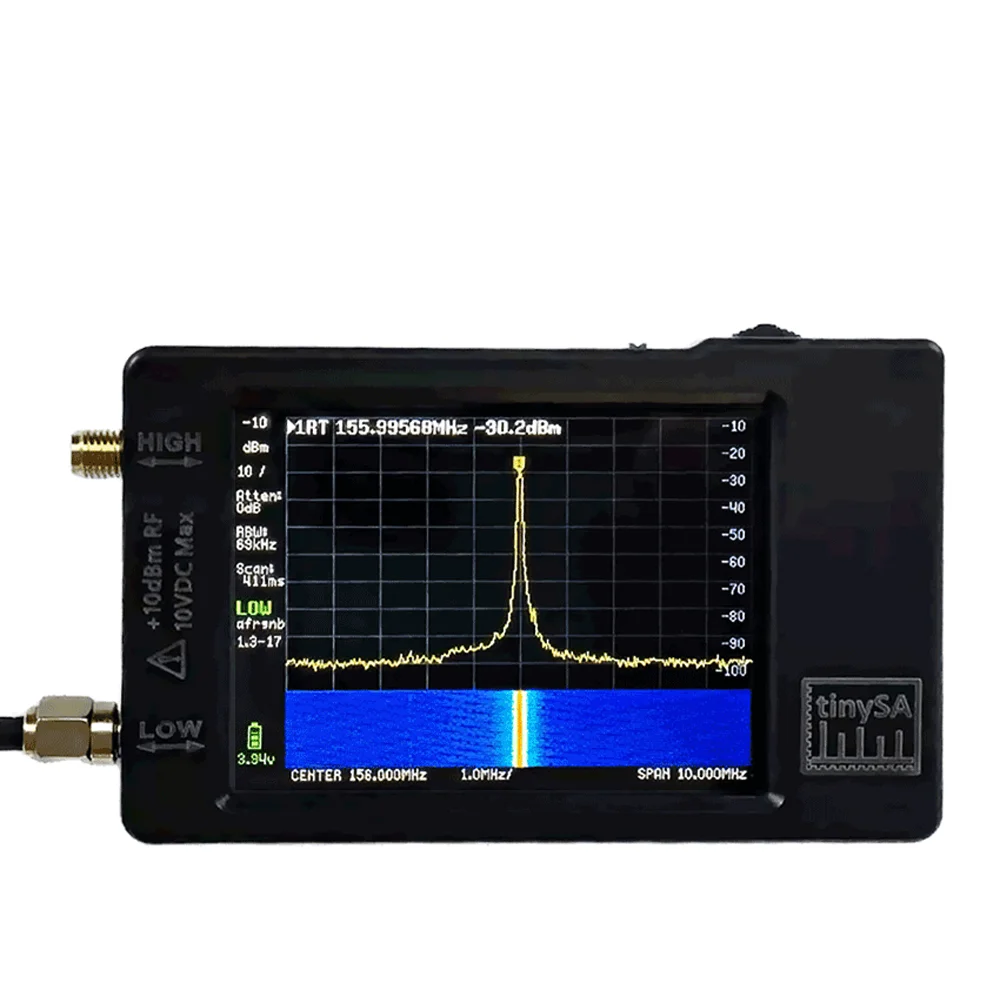 При использовании предоставленной телескопической антенны или низкого RBW, обратите внимание на помехи tinysa MCU на 48 МГц и его гармоник.