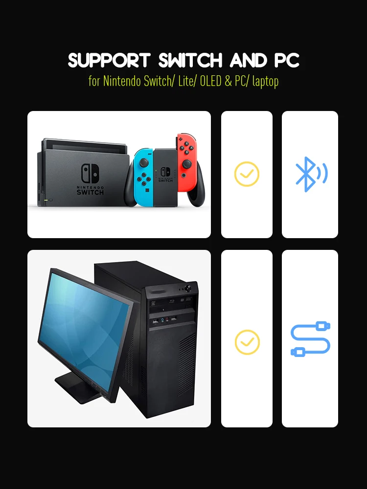 Специально разработанный совместимый-nintendo switch/switch lite/switch oled консолей/pc/loptop. Он был улучшен и обновлен на основе отзывы клиентов для решения таких вопросов, как низкая чувствительность, задержки с ключами и джойстиками и нестабильные Bluetooth-совместимые соединения.
