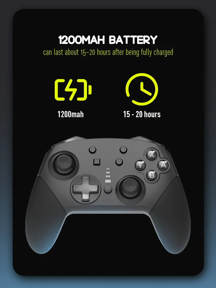 Литиевая батарея большой емкости емкостью 550 мАч. Просто заряжайте в течение 2-3 часов, контроллер переключателя может обеспечить вам 8-10 часов непрерывного игрового времени, обеспечить прекрасные моменты и улучшить игровой опыт. Выключатель может не только подтвердить оставшуюся мощность аккумулятора, но корпус контроллера также имеет функцию предупреждения о низком напряжении. Может использоваться непрерывно в течение длительного времени.
