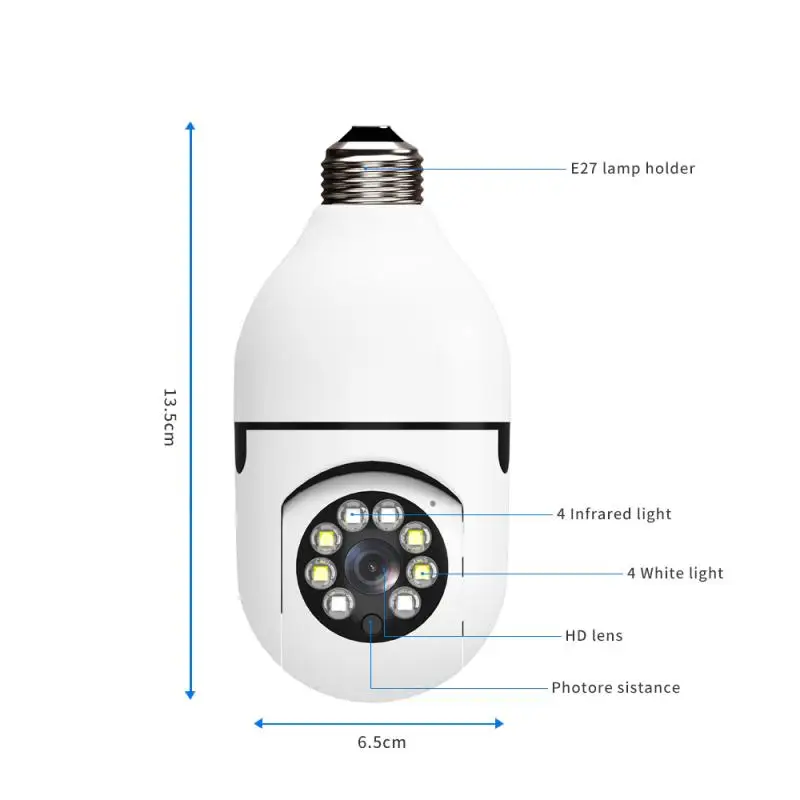 5. Установка очень проста, может использоваться обычный бытовой держатель лампы E27, настоящая беспроводная камера наблюдения, без проблем с проводкой.