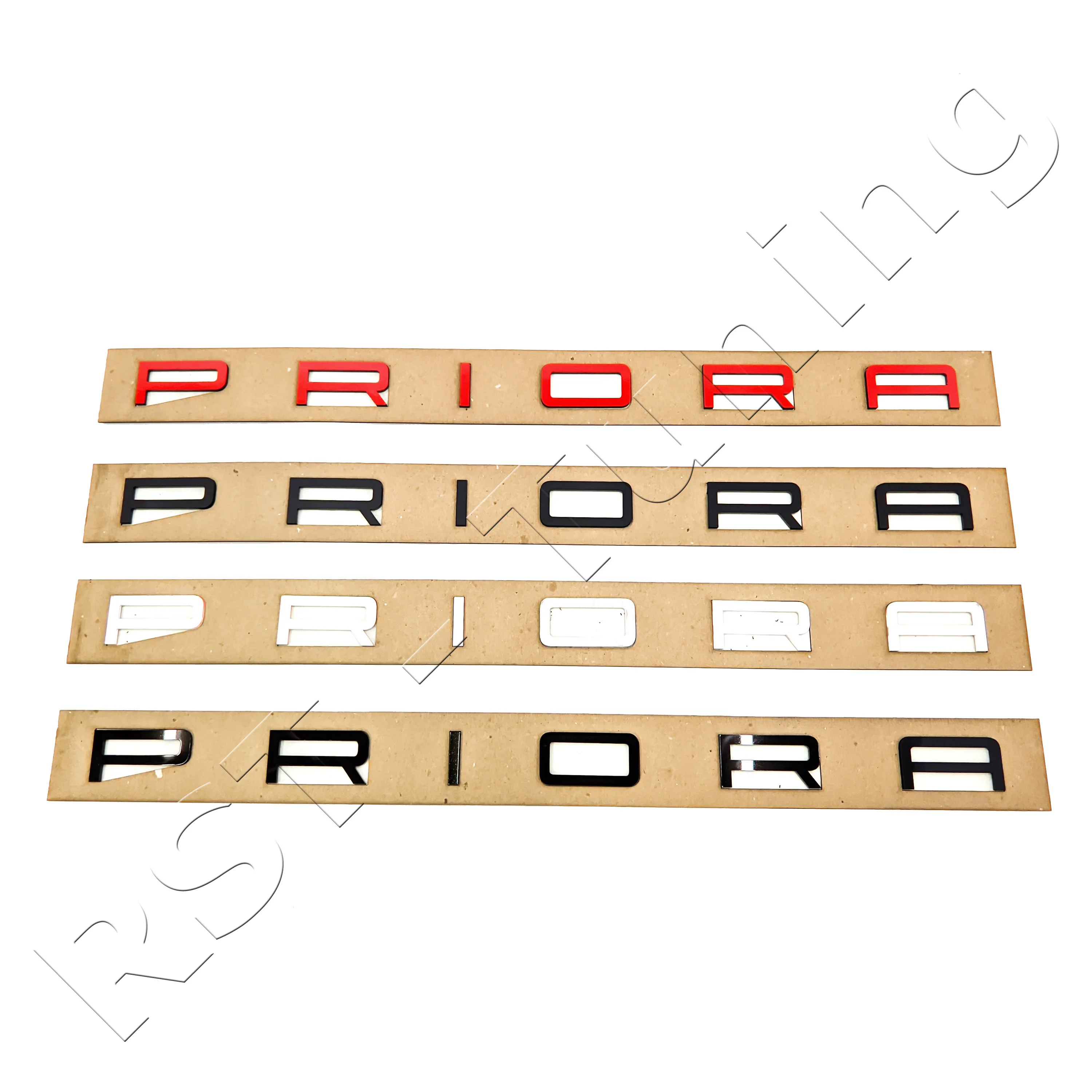 Надпись изготовлена из пластика, который клеится на двухсторонний скотч на крышку багажника автомобиля Лада Приора.