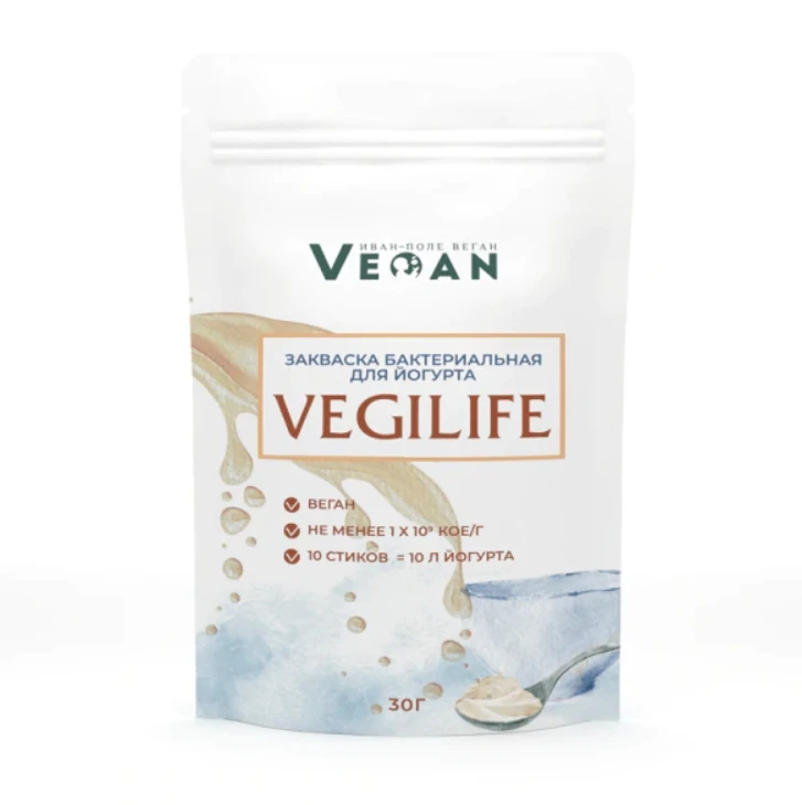 Бактериальная закваска “VegiLife” была разработана специально для приготовления веганского йогурта из овсяной смеси. Ее вы также можете купить в нашем интернет-магазине. Сухая смесь содержит специальный стабилизатор, делающий союз с закваской особенно густым и вкусным. Подробную инструкцию приготовления домашнего овсяного йогурта вы найдете на упаковке.Закваской легко пользоваться. Внутри упаковки 10 порционных стиков. И миллиарды полезных бактерий, которые улучшат работу пищеварительной системы. А заодно укрепят иммунитет.Для приготовления 1 л овсяного йогурта* вам понадобится:1. Смесь овсяная сухая от «VEOAN» -160 г2. закваска «VegiLife» - 1 стик3. питьевая вода (75-85°С) - 850 мл4. йогуртница (желательно)Способ приготовления:1. Отмерьте на весах 160 г овсяной смеси от «Veoan»и смешайте с 850 мл питьевой горячей воды (75-85°С). Размешайте до полного растворения в блендере или шекере.2. Полученную смесь остудите до 35-40 °С3. Добавьте 1 стик с закваской «VegiLife», тщательно перемешайте с помощью шейкера или венчика4. Полученную смесь перелейте в йогуртницу* на 8-9 часов при температуре 35-40 °С5. Через 8 часов перемешайте полученную смесь и перелейте в герметичную посуду6. Поставьте в холодильник на несколько часов для охлаждения. Веганский овсяный йогурт* готов к употреблениюПриятного аппетита!Для придания вкуса, в веганский овсяный йогурт* можно добавить кокосовую карамель, конфитюр, или любимый наполнитель.*При отсутствии йогуртницы заверните посуду в большое полотенце (чтобы смесь не остывала) и оставьте сквашиваться на 10-12 часов в теплое место.