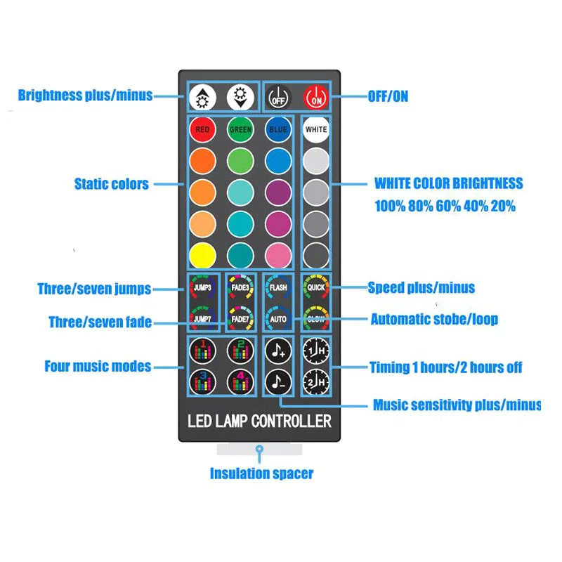 Приложение оснащено 4 видами эффектов на светильник. Энергия, ритм, спектр и прокрутка. Это позволяет настроить чувствительность и цвет. Вы можете использовать свой мобильный телефон для управления изменяющей цвет сказочной лампой, особенно для удаленного изменения яркости, цвета, режима изменения цвета и музыкального режима лампы.
