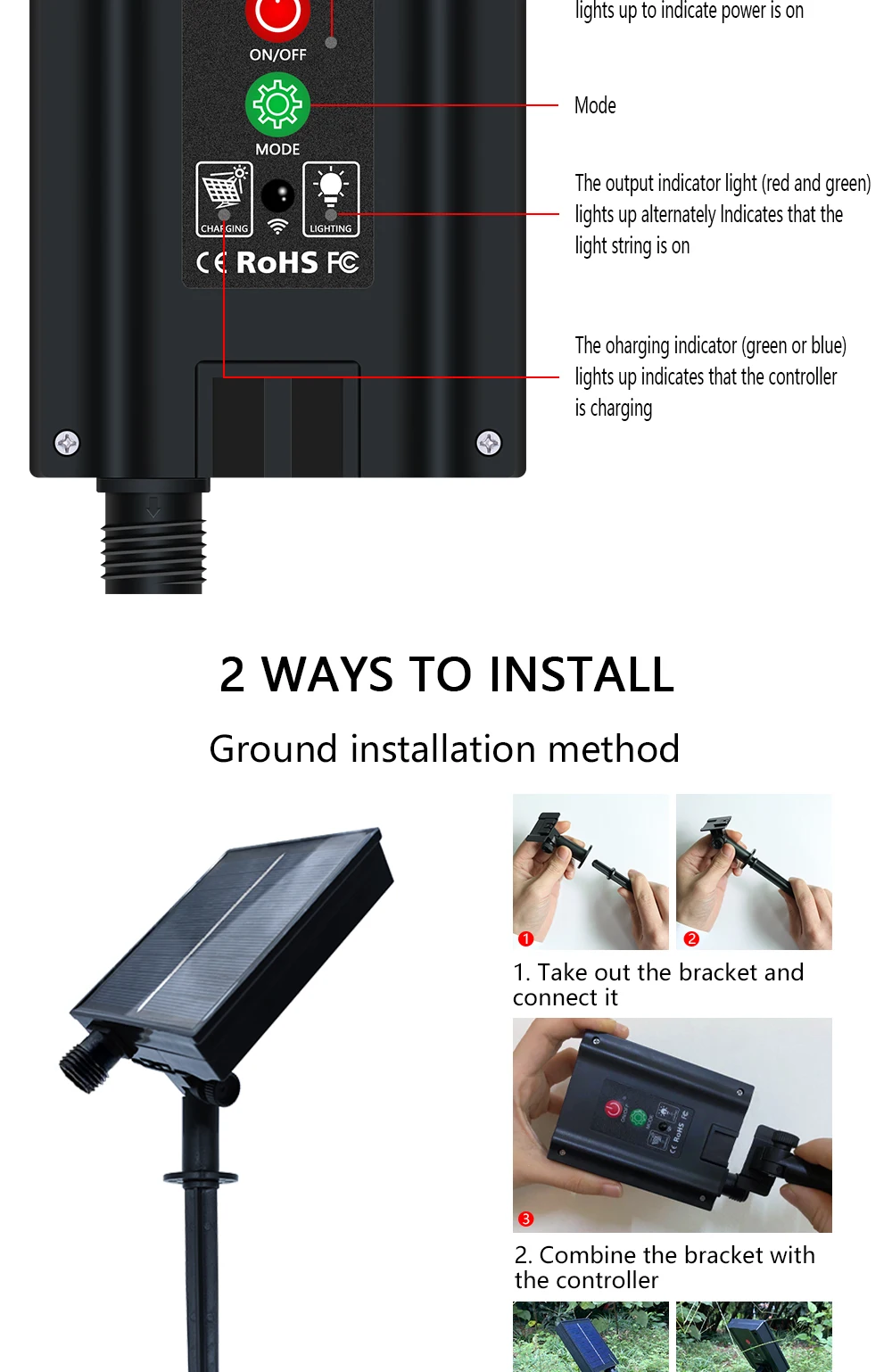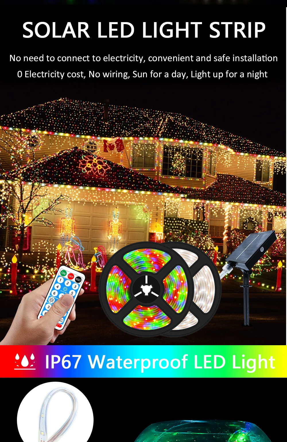 4. Водонепроницаемый наружный светильник: класс водонепроницаемости IP67, гибкий солнечный светильник, ремень подходит для украшения на открытом воздухе, защиты окружающей среды и энергосбережения.