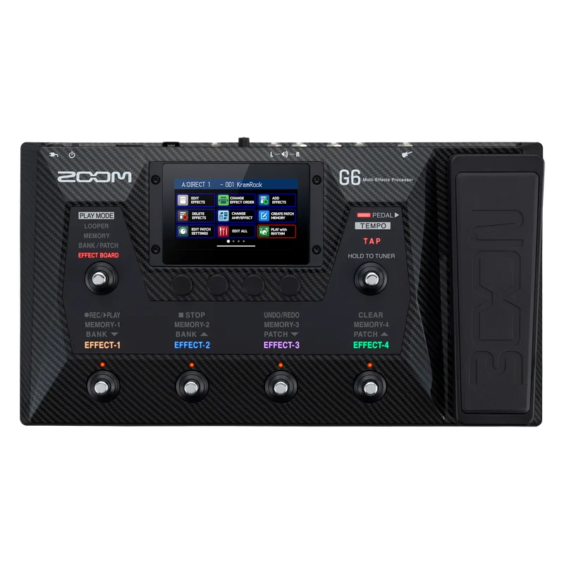 G6 также предоставляет полную коллекцию легендарных гитарных эффектов и тонов Zoom, включая совершенно новые искажения и модуляционные эффекты.
