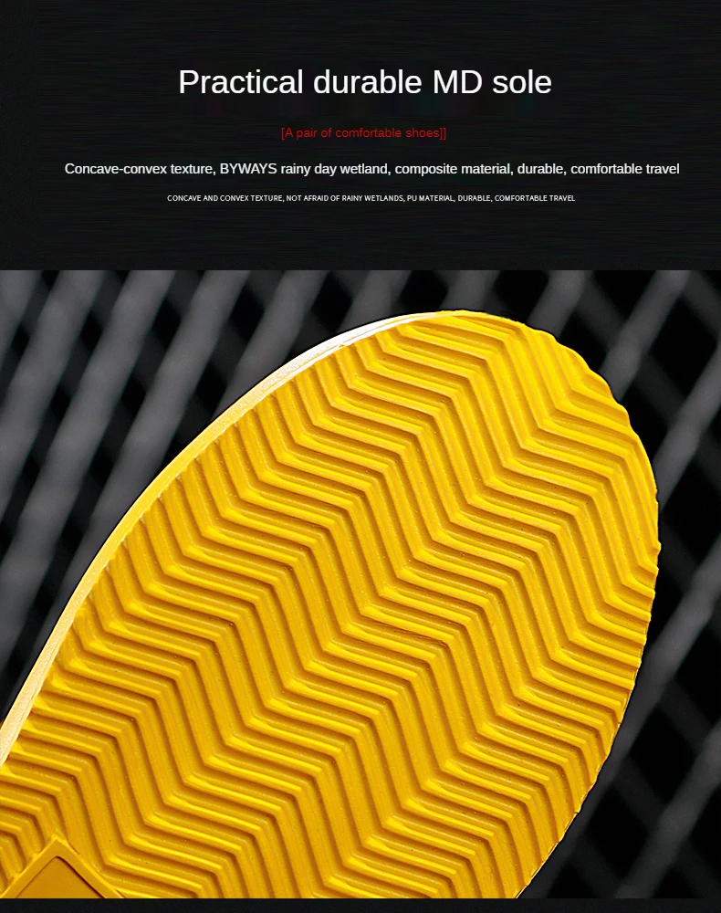 Anti-slip: The rubber sole has high elasticity and flexibility, has shock absorption, anti-deformation, abrasion resistance, anti-slip performance consistent with the ground, and can absorb impact.