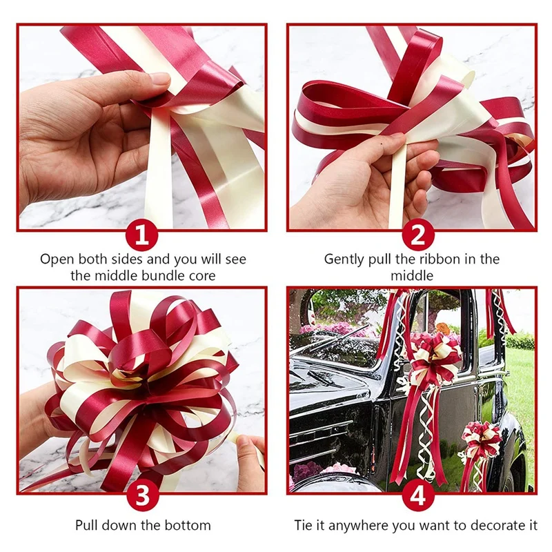 Very easy to use: pulling the two inner thin ribbon strings forms to a beautiful full shape bow.