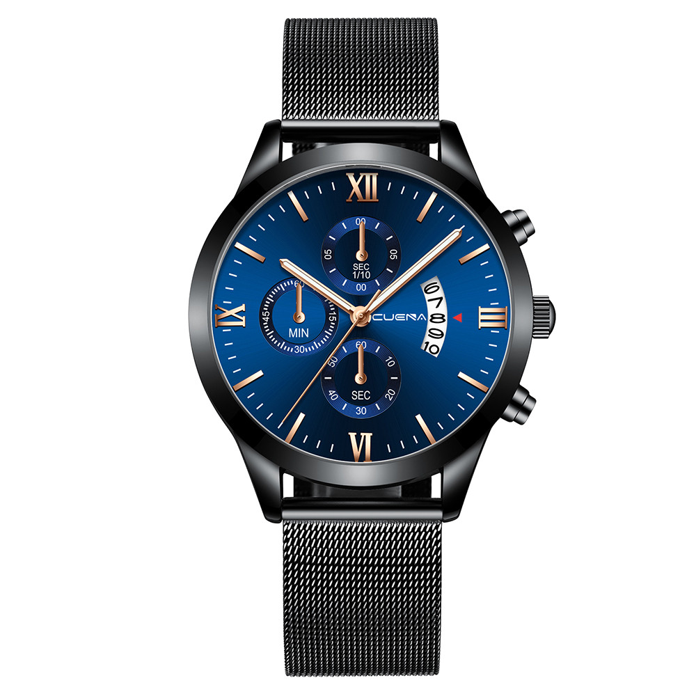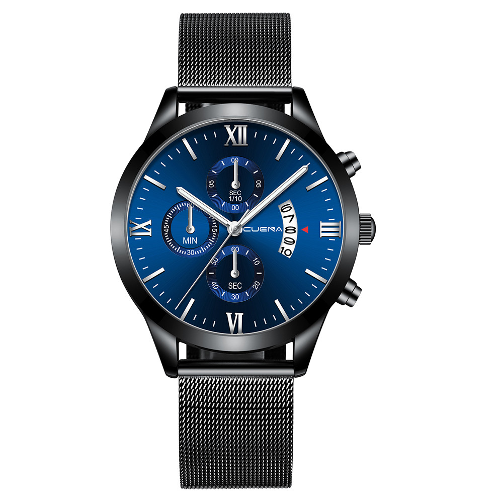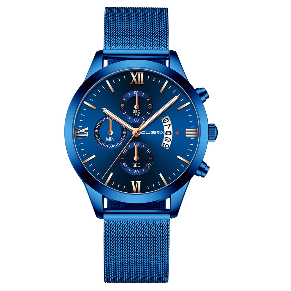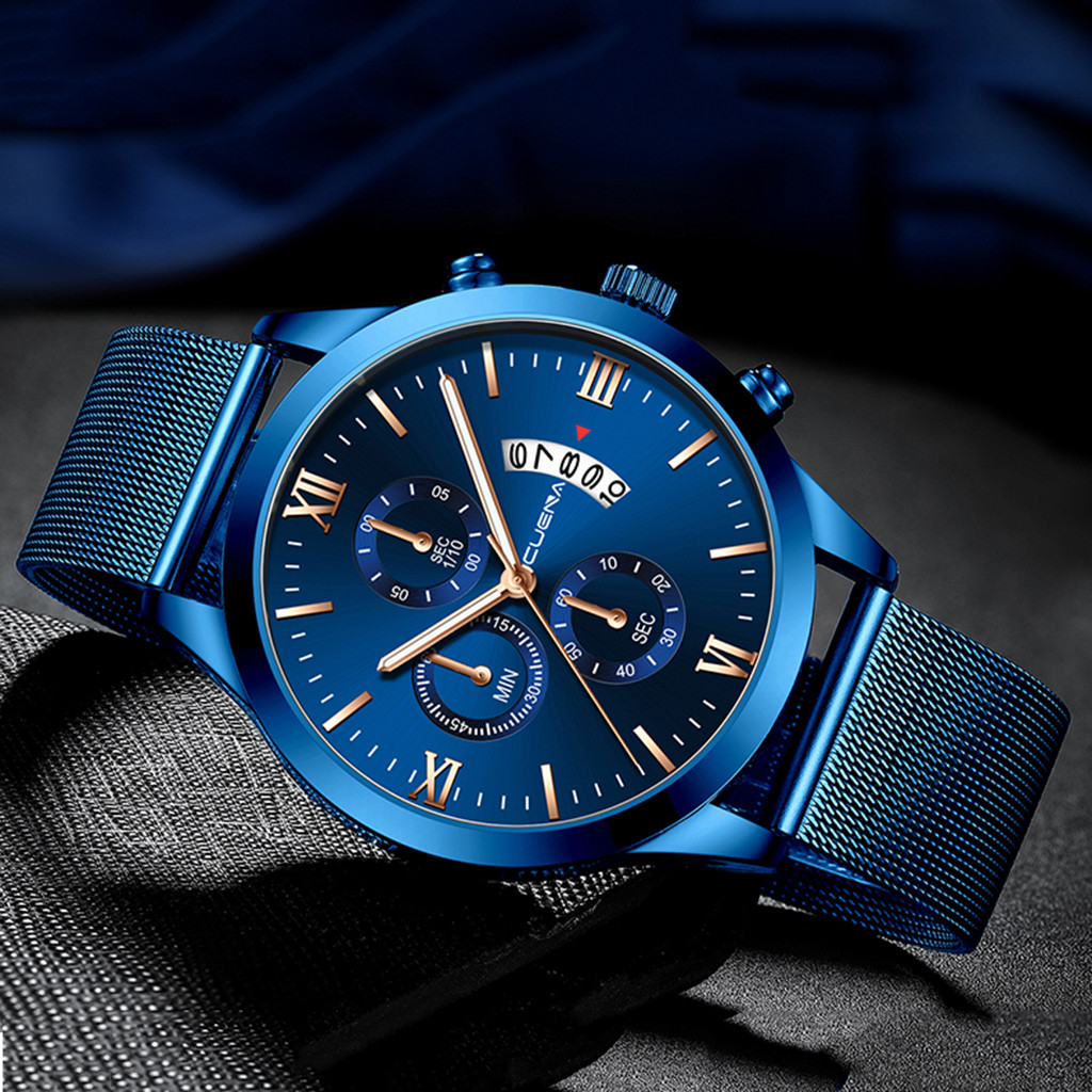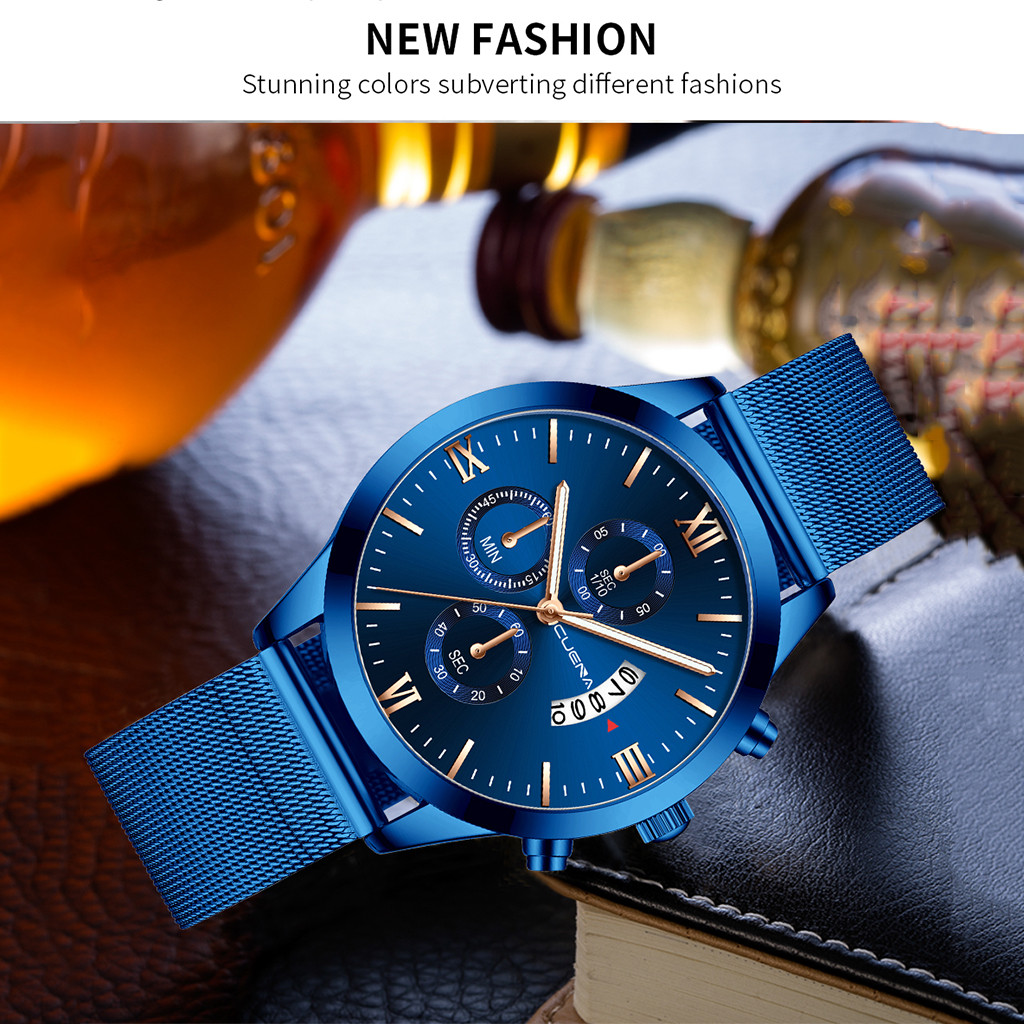 CUENA мужские деловые часы со стальным ремешком три календарь с глазами кварцевые часы