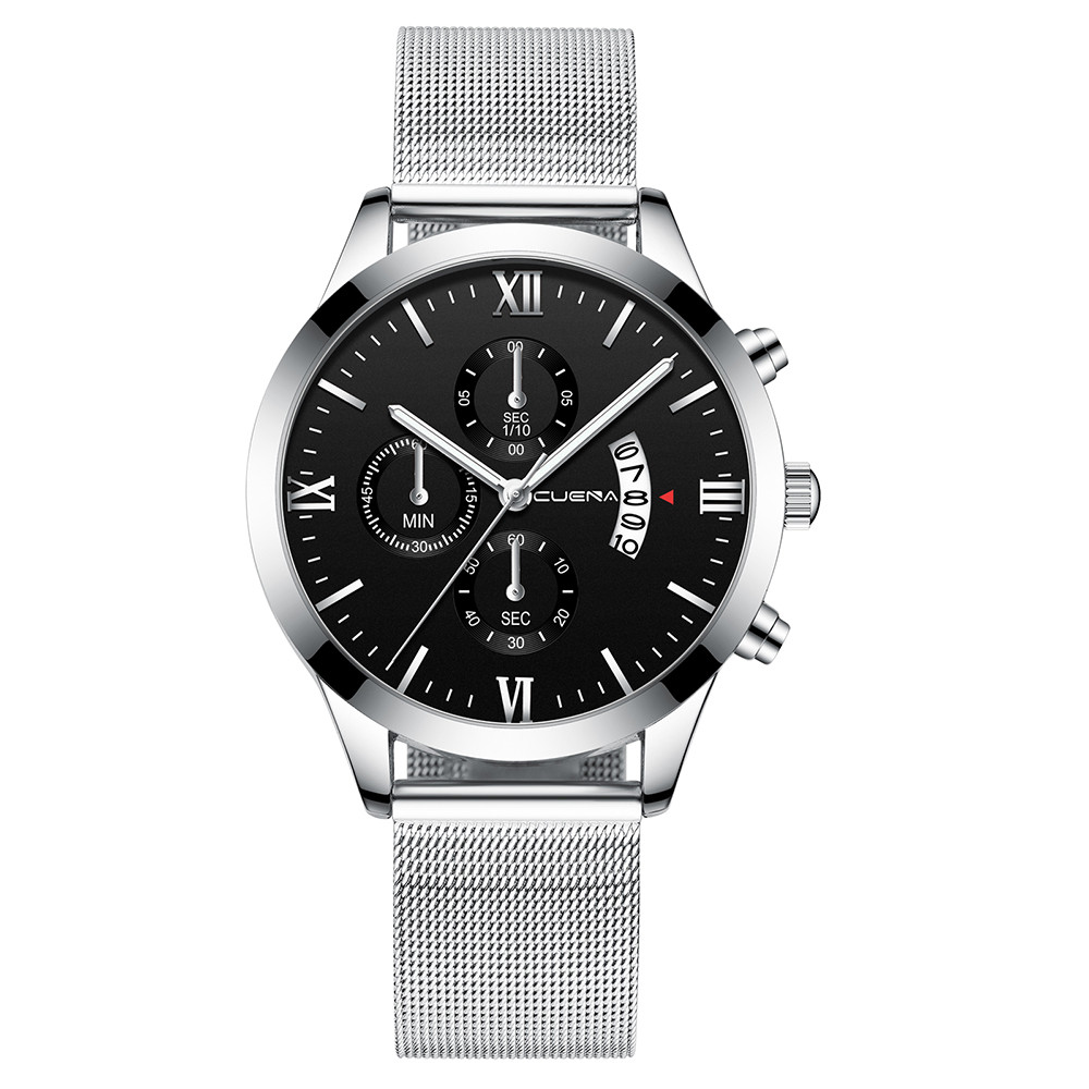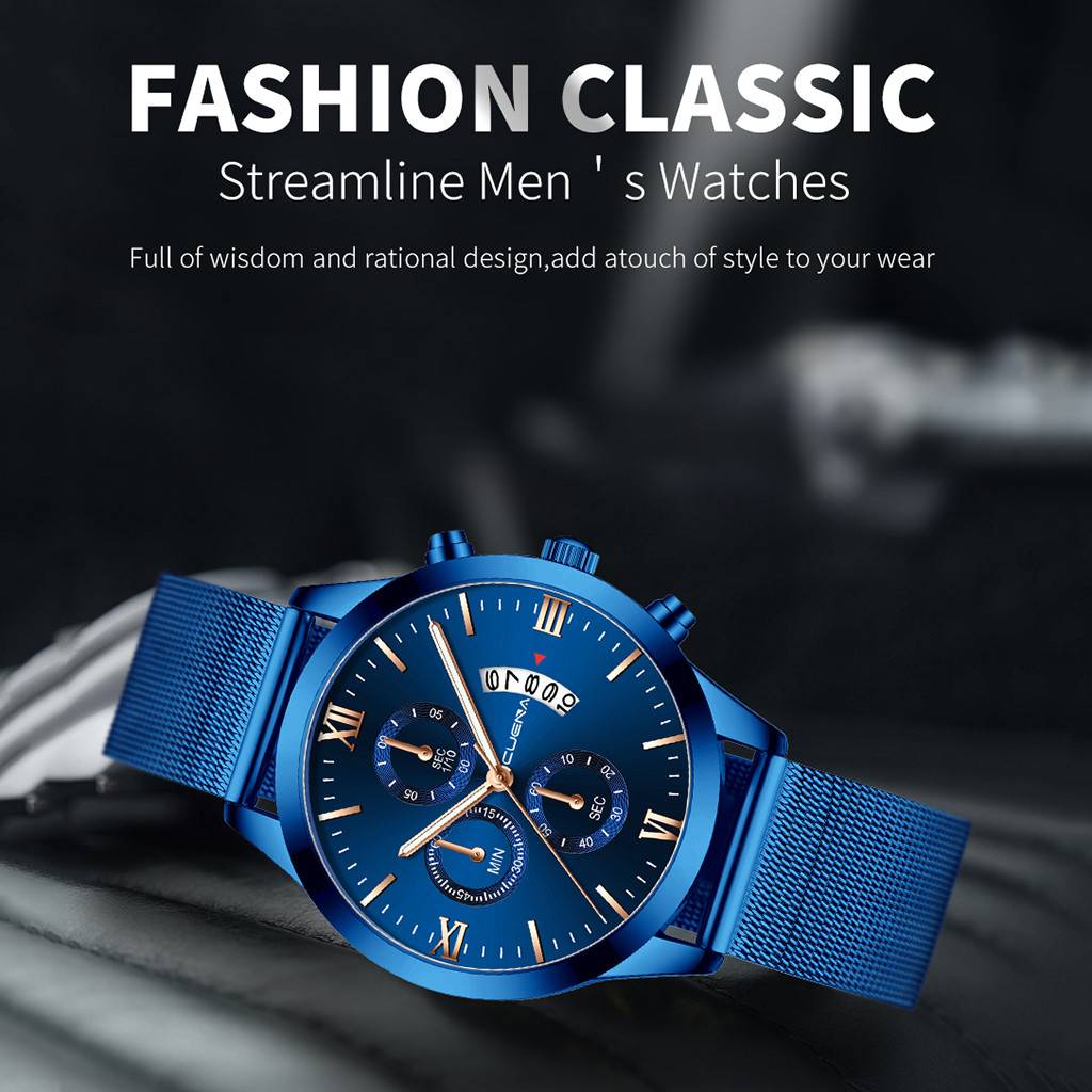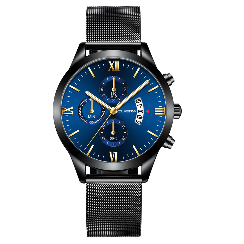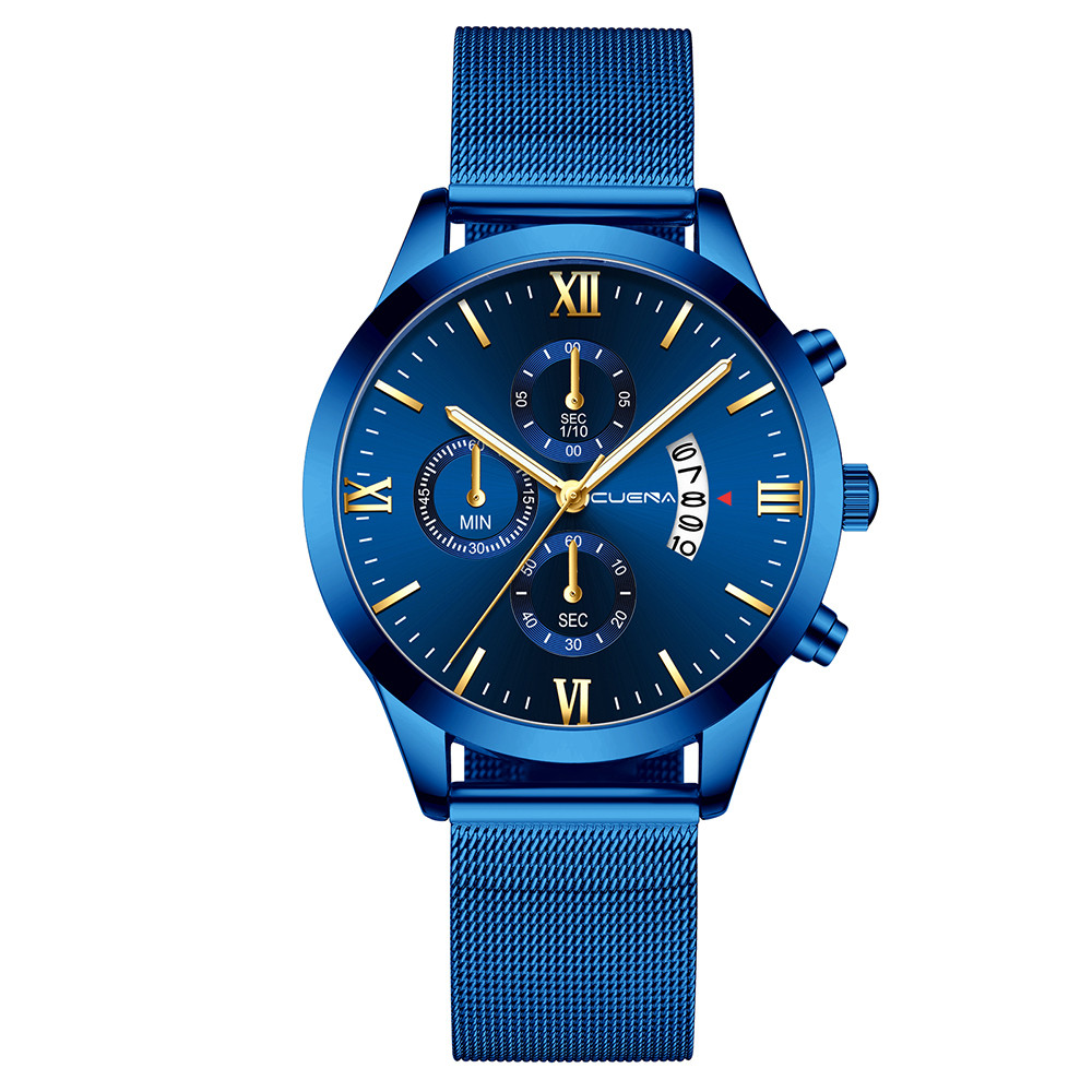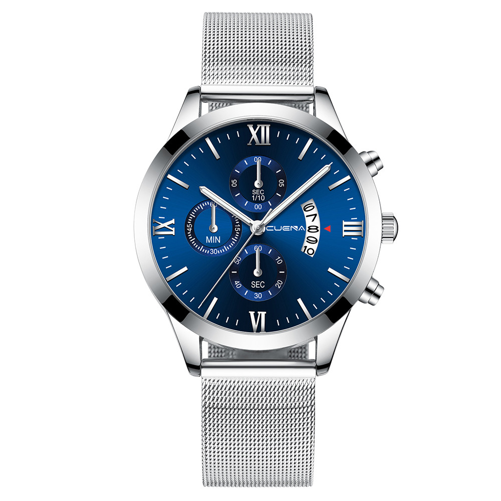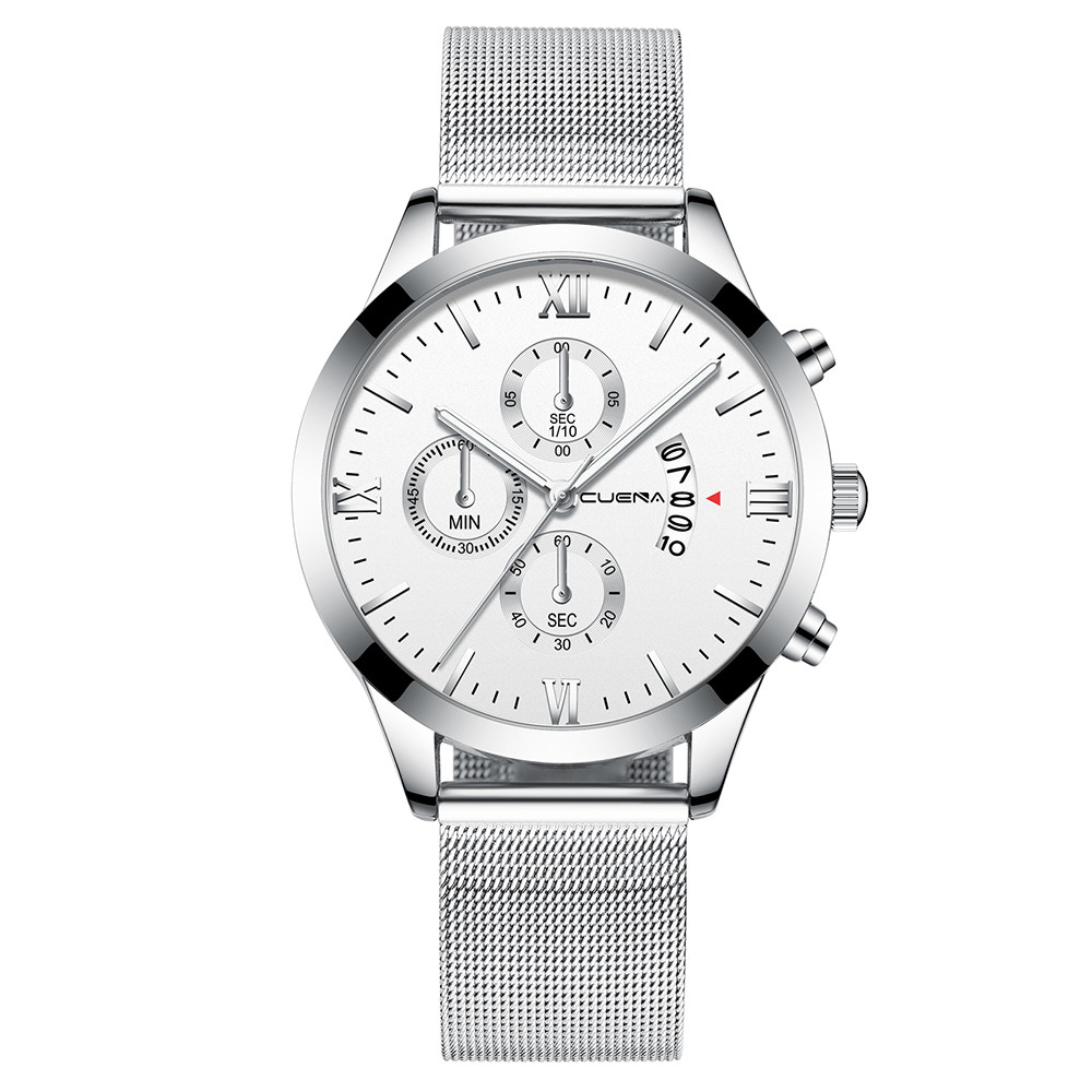 CUENA мужские деловые часы со стальным ремешком три календарь с глазами кварцевые часы