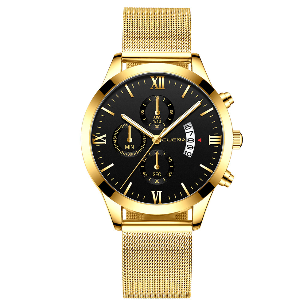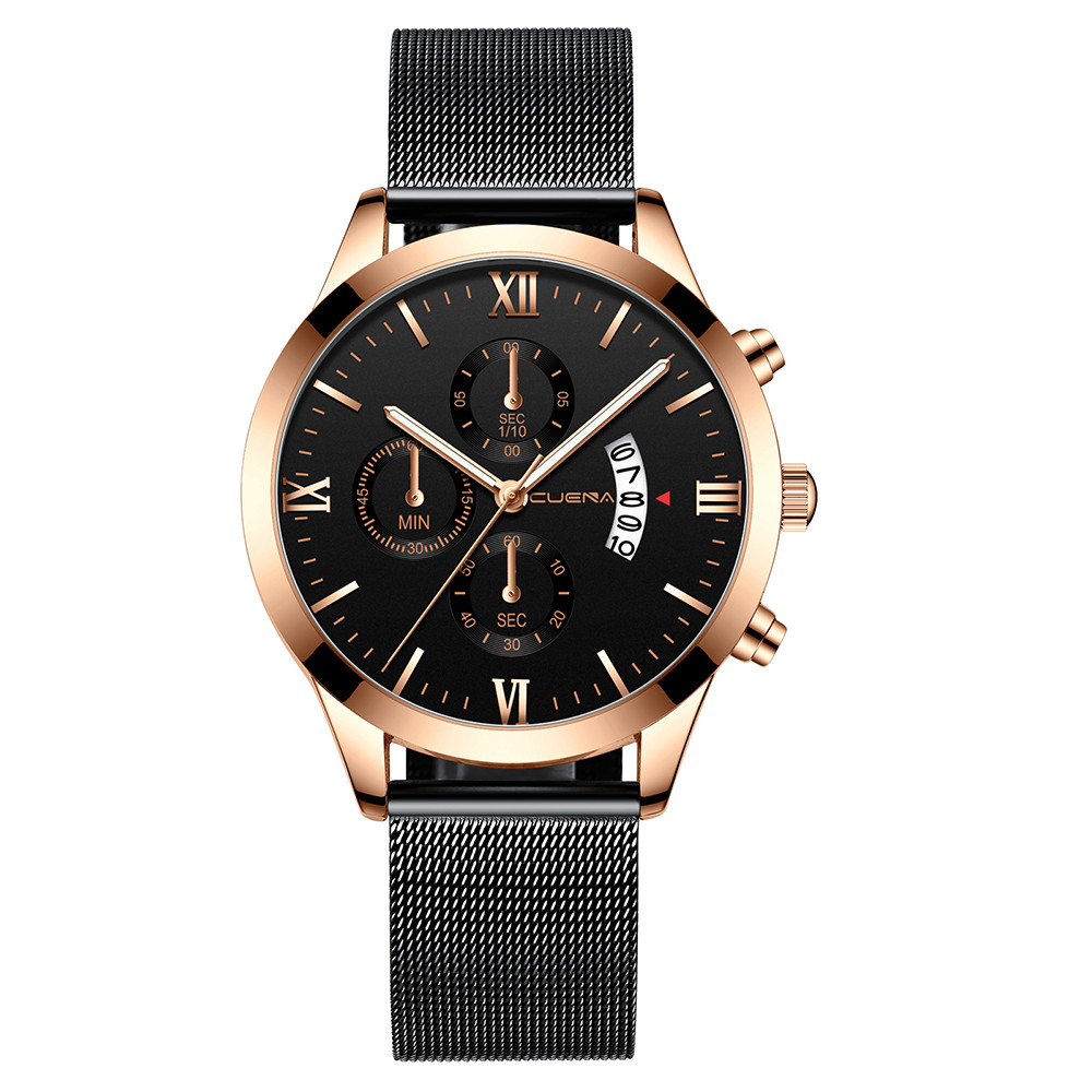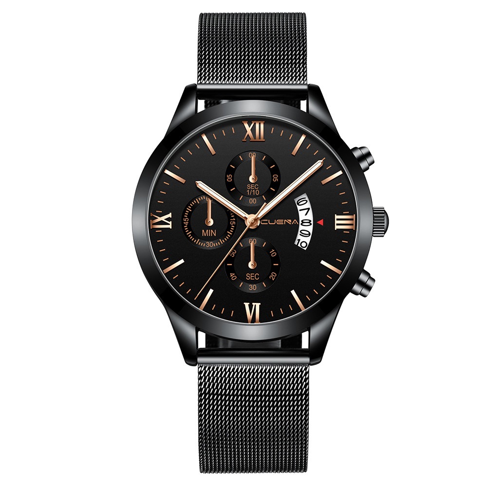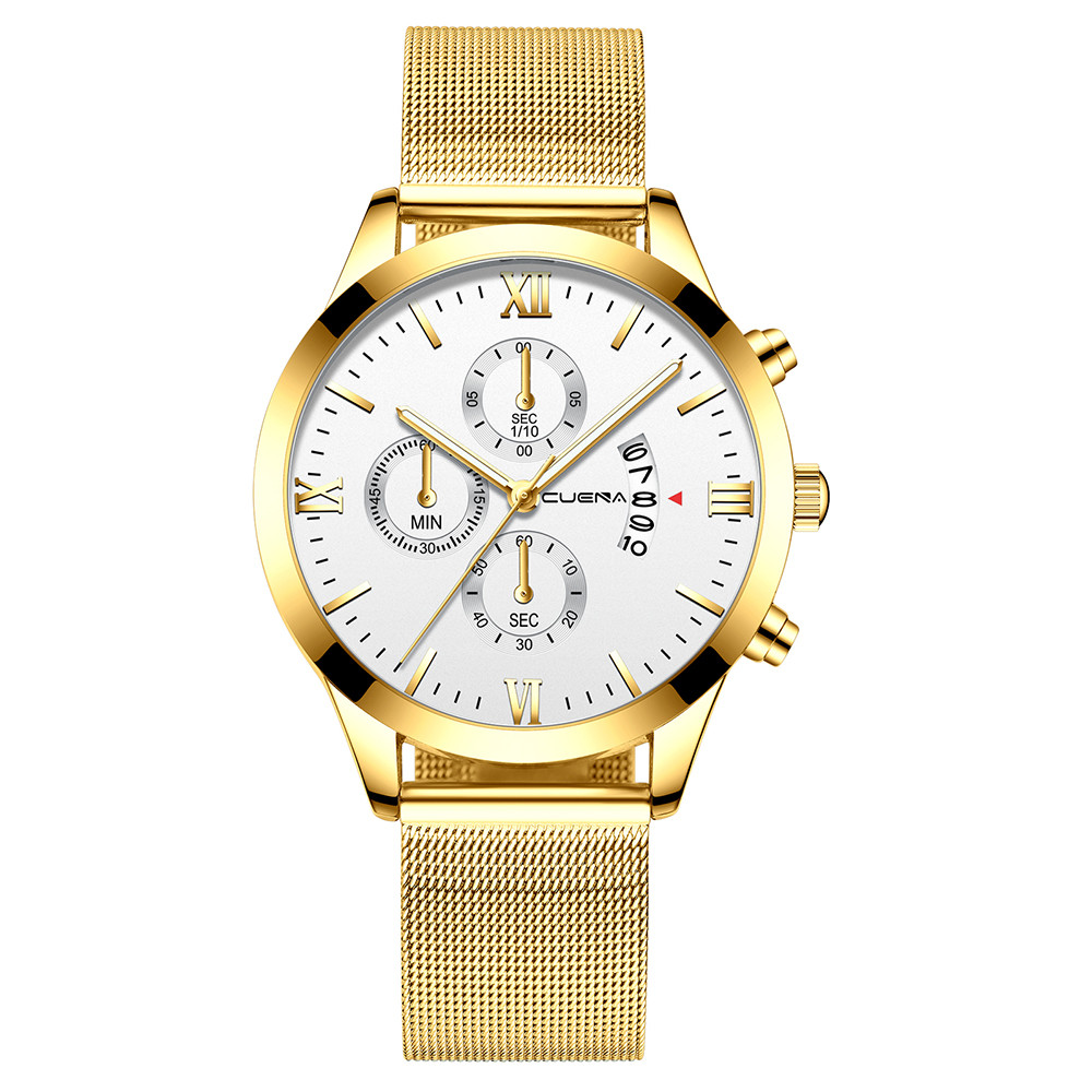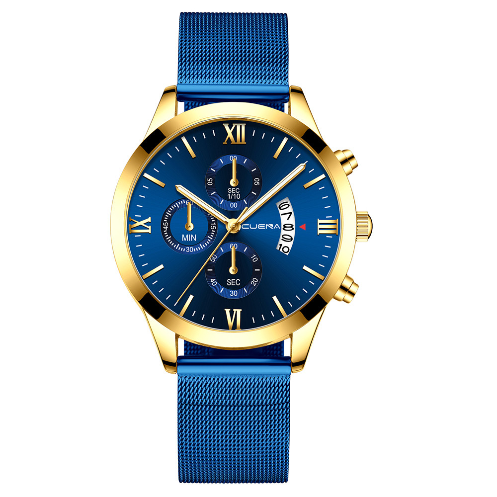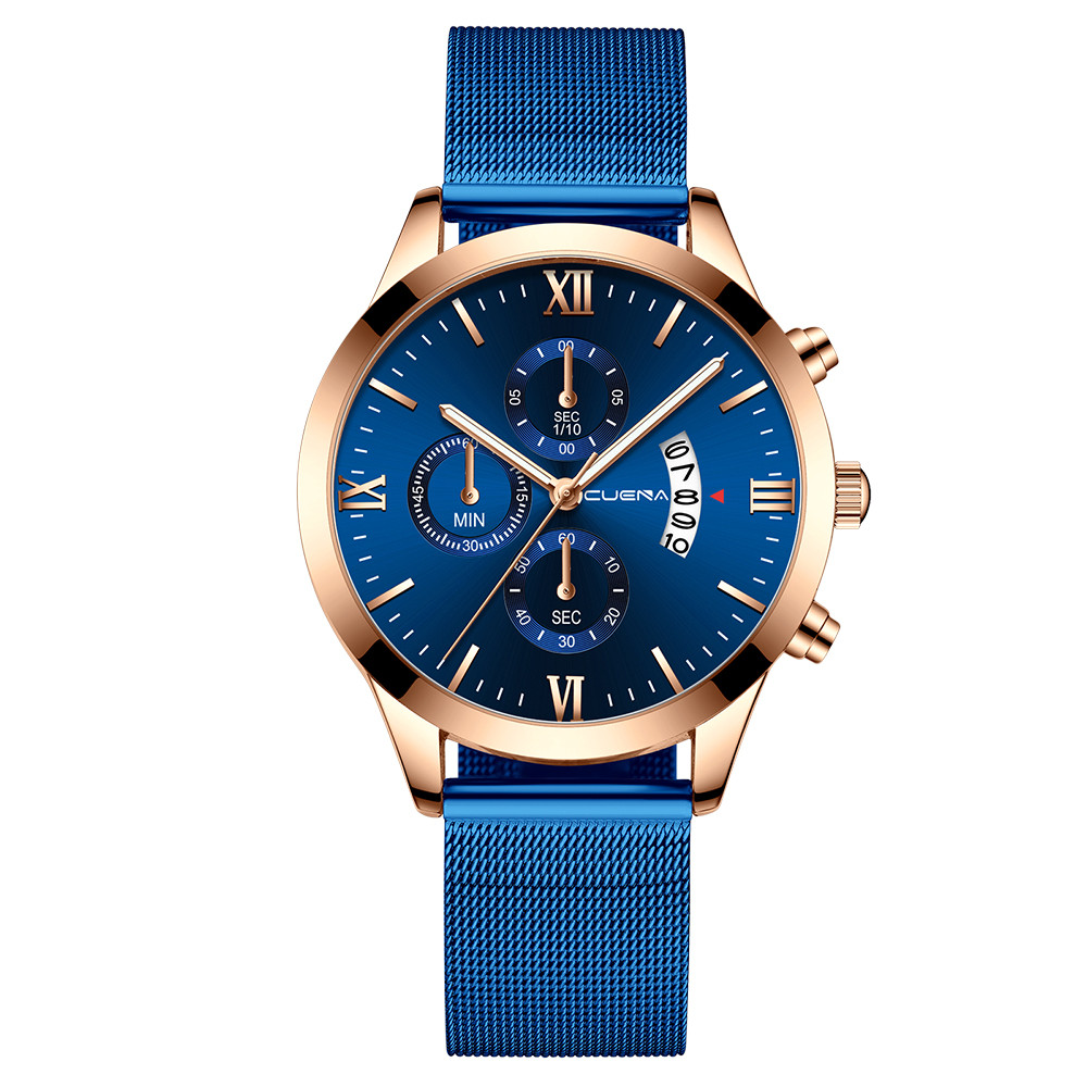 CUENA мужские деловые часы со стальным ремешком три календарь с глазами кварцевые часы