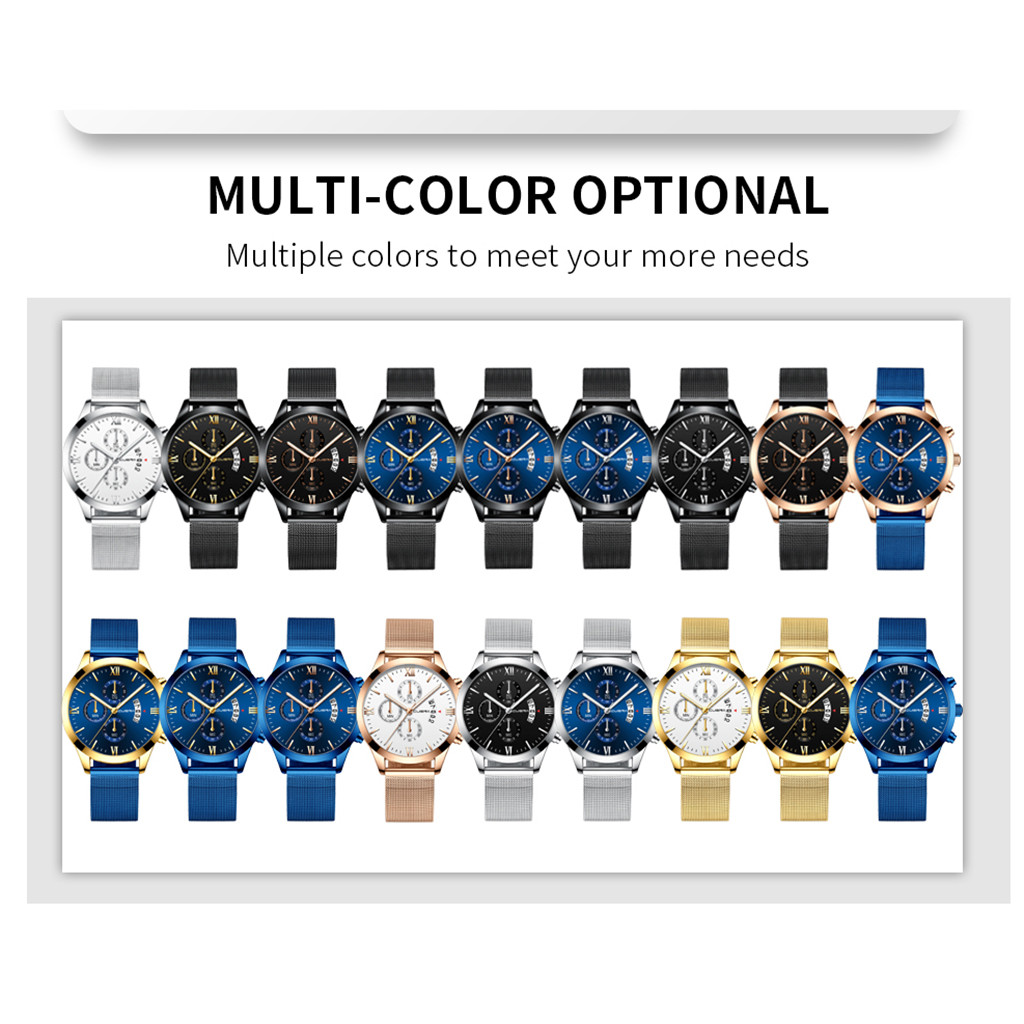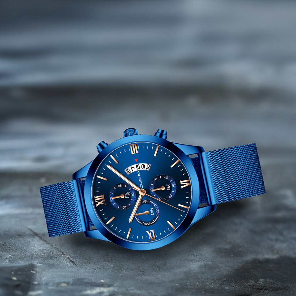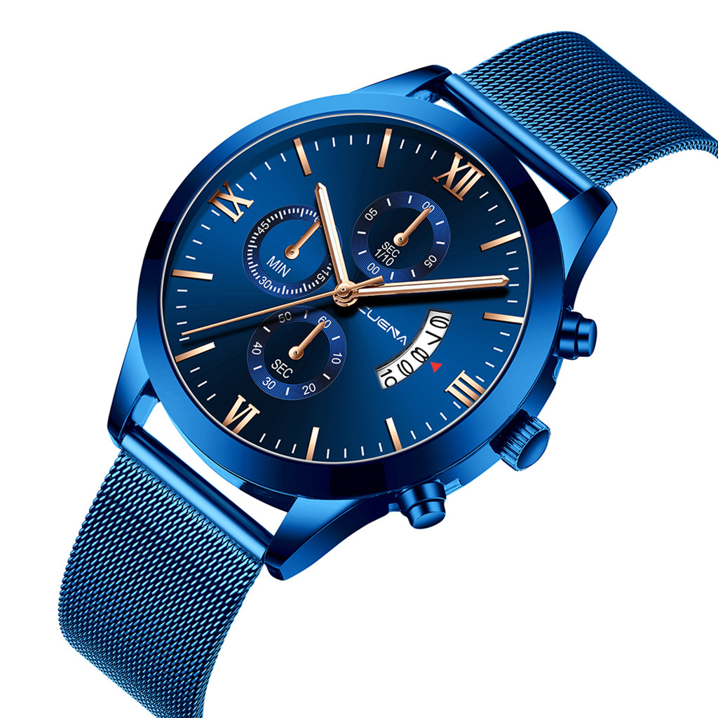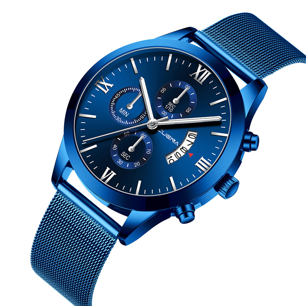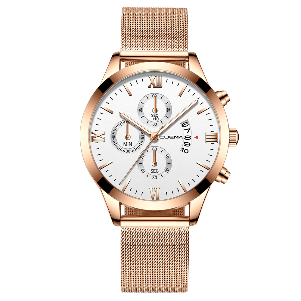 CUENA мужские деловые часы со стальным ремешком три календарь с глазами кварцевые часы