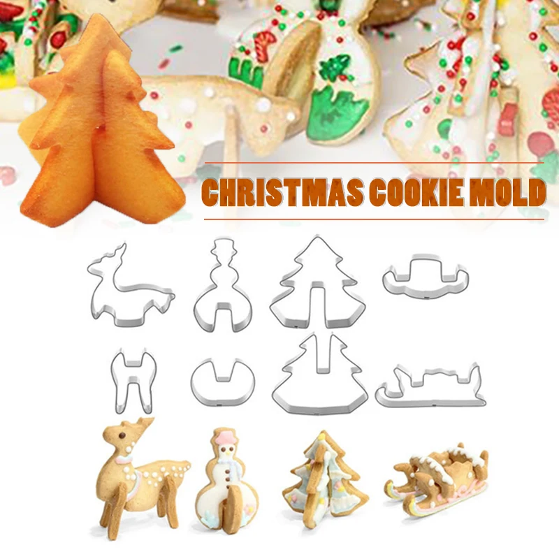 8 шт. Рождественская форма для печенья из нержавеющей стали 3D формы для печенья резаки для форм Рождественская елка Снеговик сани лося инструменты для украшения тортаUS $3,82