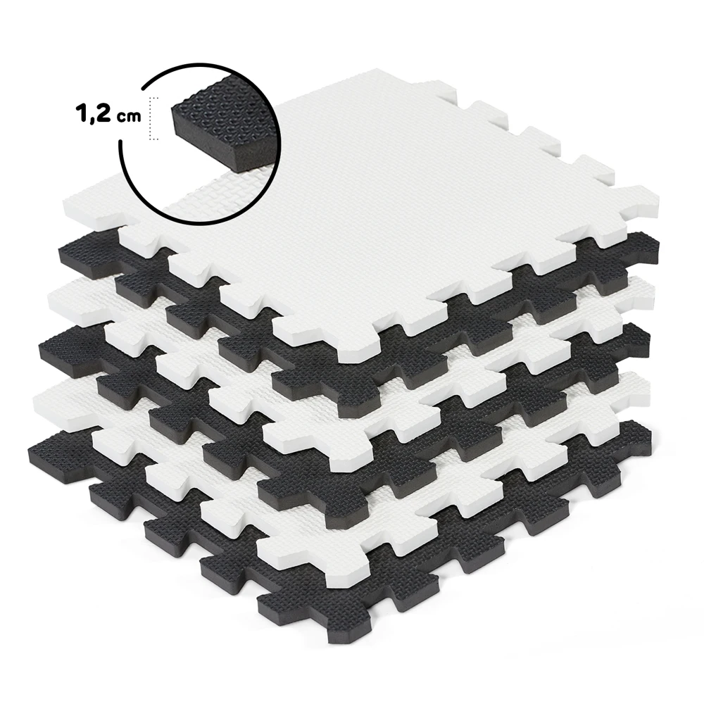 Коврик имеет самую большую толщину, доступную на рынке - 1,2 см, благодаря чему обеспечивает изоляцию от пола.