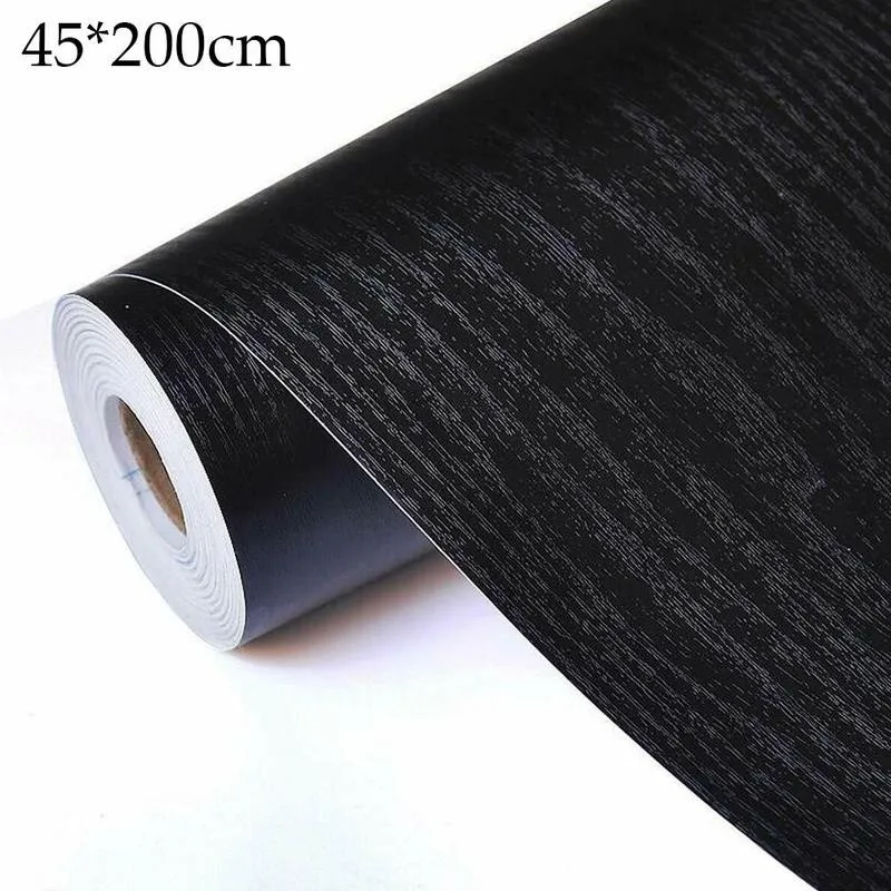 Самоклеющиеся черные деревянные обои, водонепроницаемые старые мебельные наклейки, деревянный дверной шкаф, рабочий стол, ПВХ обои 45*200 см