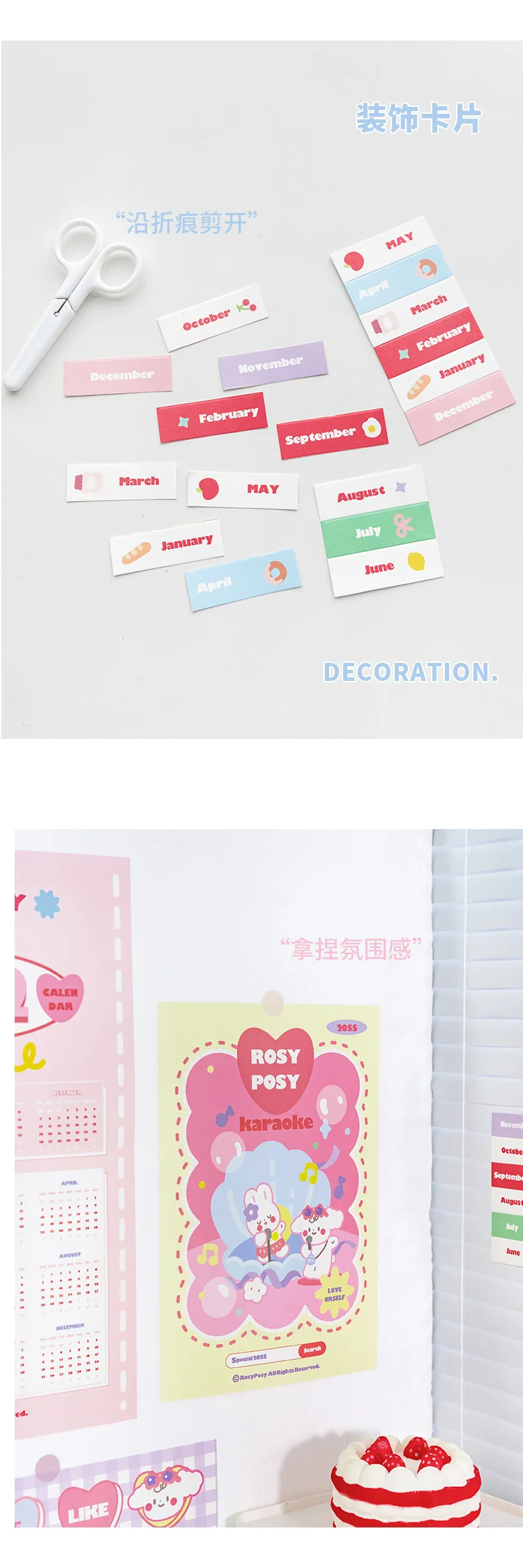 13 шт./компл. Kawaii 2022 Календарь Карта стена спальни, декоративный бумажный