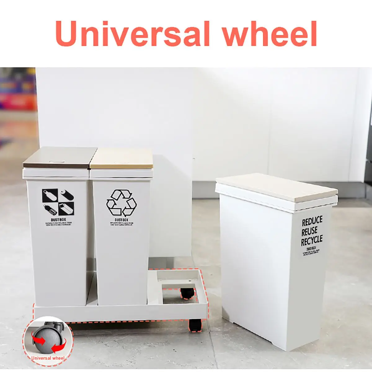 Kitchen Sorting Waste Bin Home Corner Garbage Bucket Floor Standing Space Saving Wet Dry Sorted Trash Can With Wheels 24/36L