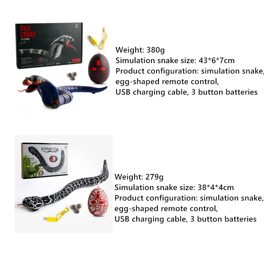Вес: 380 г, 279 г Цвет: синий, черный Форма: Кобра, погремушка Размер: 43*6*7 см, 38*4*4 см Материал: пластик Источник питания: имитация змеи заряжается через USB, и пульт дистанционного управления требует 3 кнопочных батарей (с батареями) Посылка включает в себя: 1 имитация змеи, 1 пульт дистанционного управления в форме яйца, 1 usb-кабель для зарядки, 3 батарейки Метод связывания с помощью пульта дистанционного управления в форме яйца: Выберите любой канал a/b/c, нажмите кнопку «Вперед» для связи, если нет частоты, переключите канал, а затем нажмите кнопку «Вперед», чтобы перейти по ссылке, змея будет двигаться, если матч будет успешным.