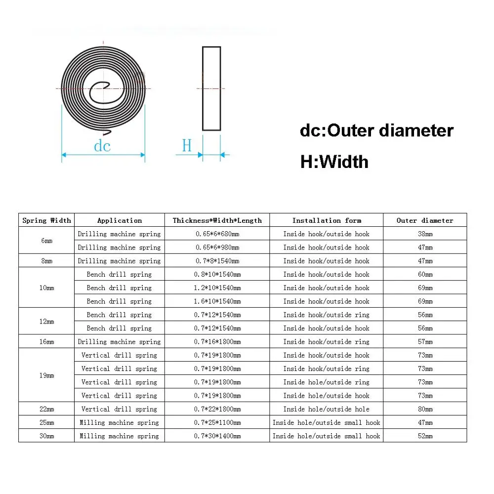 1 шт. заводная пружина фрезерование/сверлильный станок пружина внутри отверстия наружное отверстие ширина 19 22 25 30 10 мм