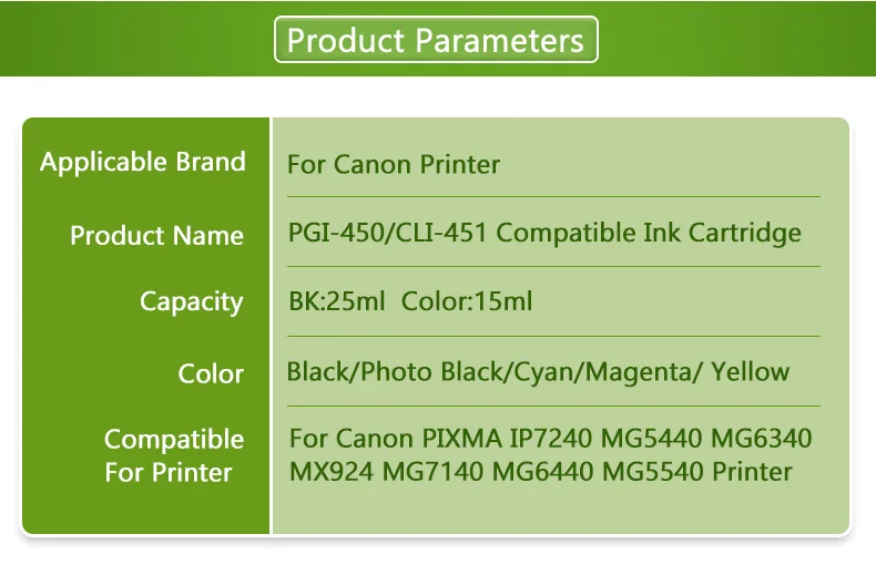 1 шт. X для Canon CLI-451Чернильный картридж для фото черного цвета, полный с чернилами с чипом