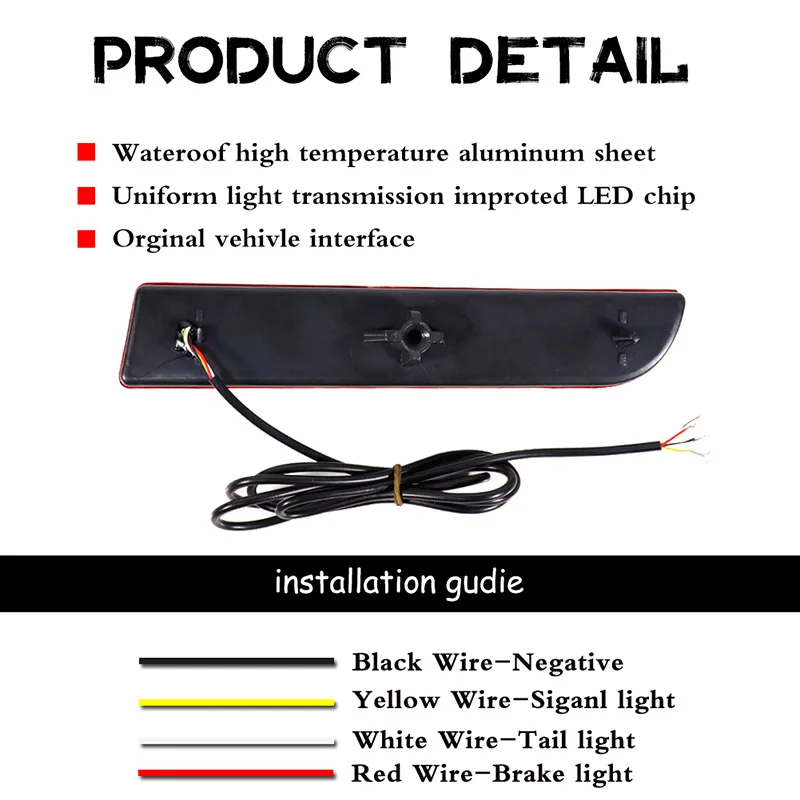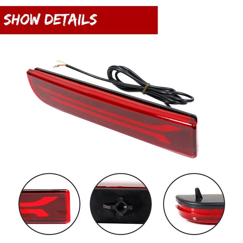 3-in-1 :Replaces the OEM rear bumper bulb-less reflectors with LED as add-on tail lights (Full led Brighter ), brake lights (Strobe Flash lighting) and turn signal lights (Sequential Lighting).