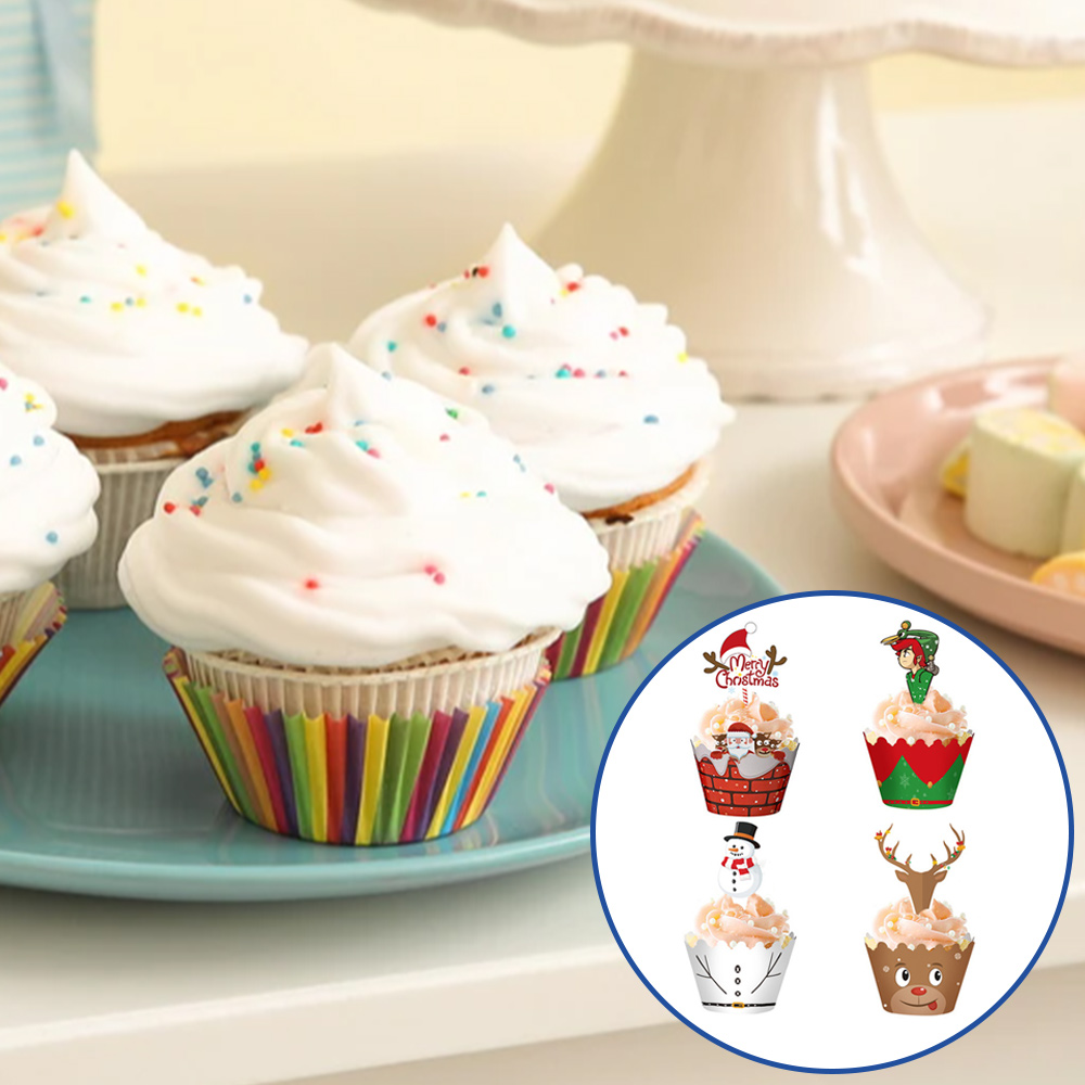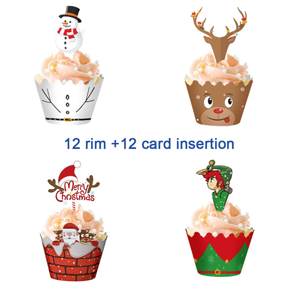 24 шт рождественские бумажные обертки для кексов Рождество Новый год День рождения инструменты для украшения торта Санта Клауса торт Топпер
