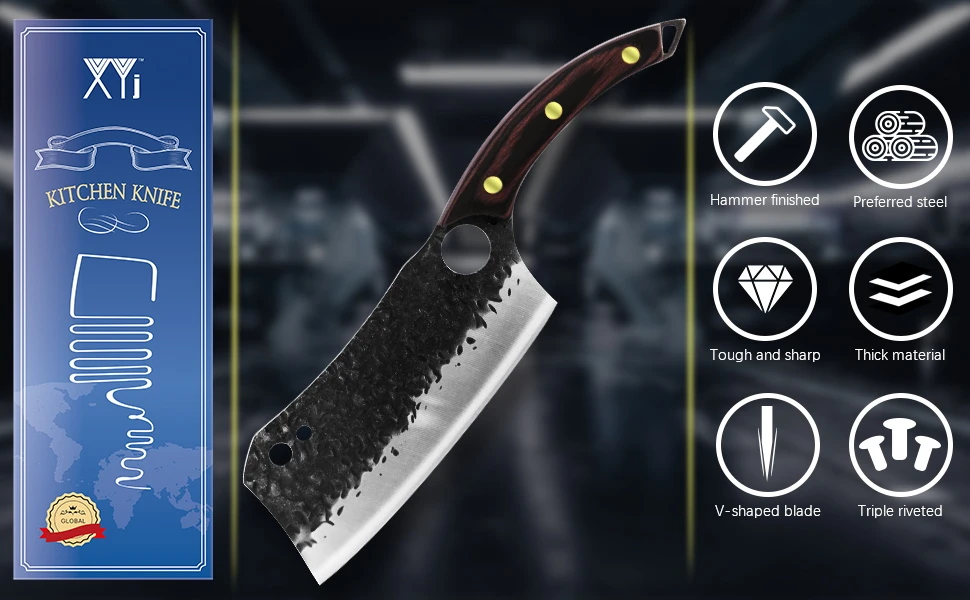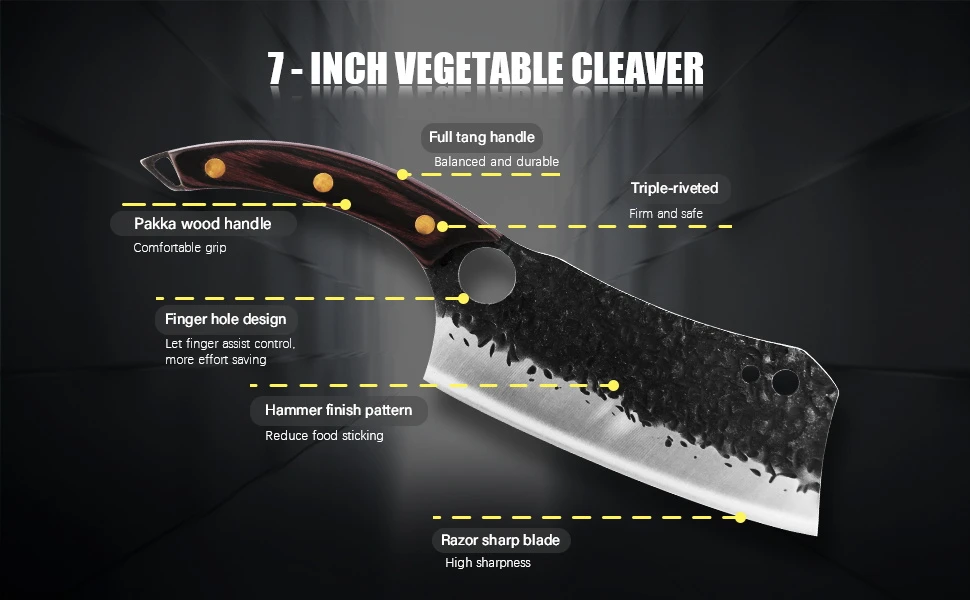 This 7 inch flexible meat cleaver knife is made of high-quality 3Cr13 stainless steel, not easy to rust and corrosion free. The manually sharpen V-blade is super sharp, offering any cook clean and precise cut.