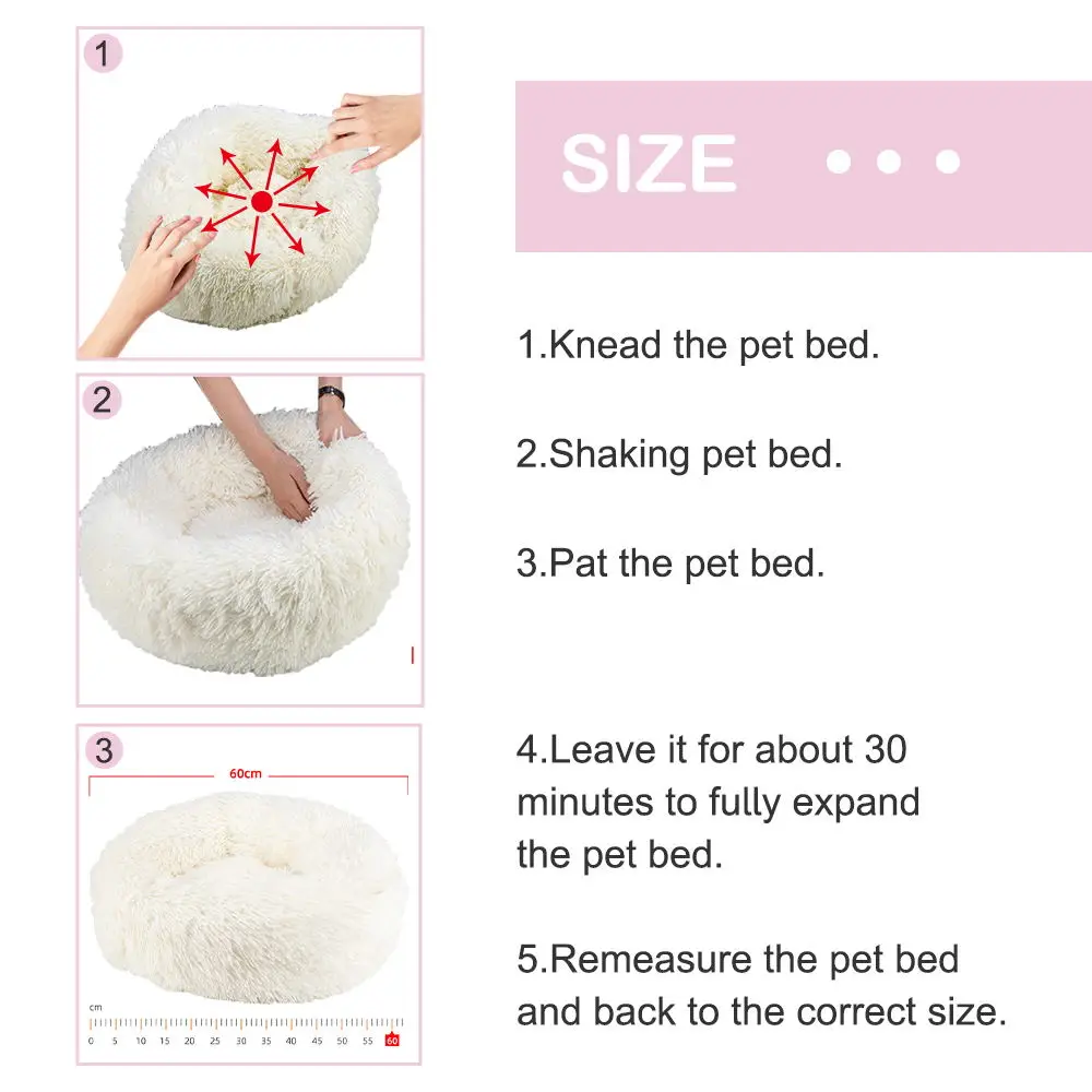Эта круглая кровать для домашних животных в форме бублика очень удобная и просторная для вас собака или кошка.